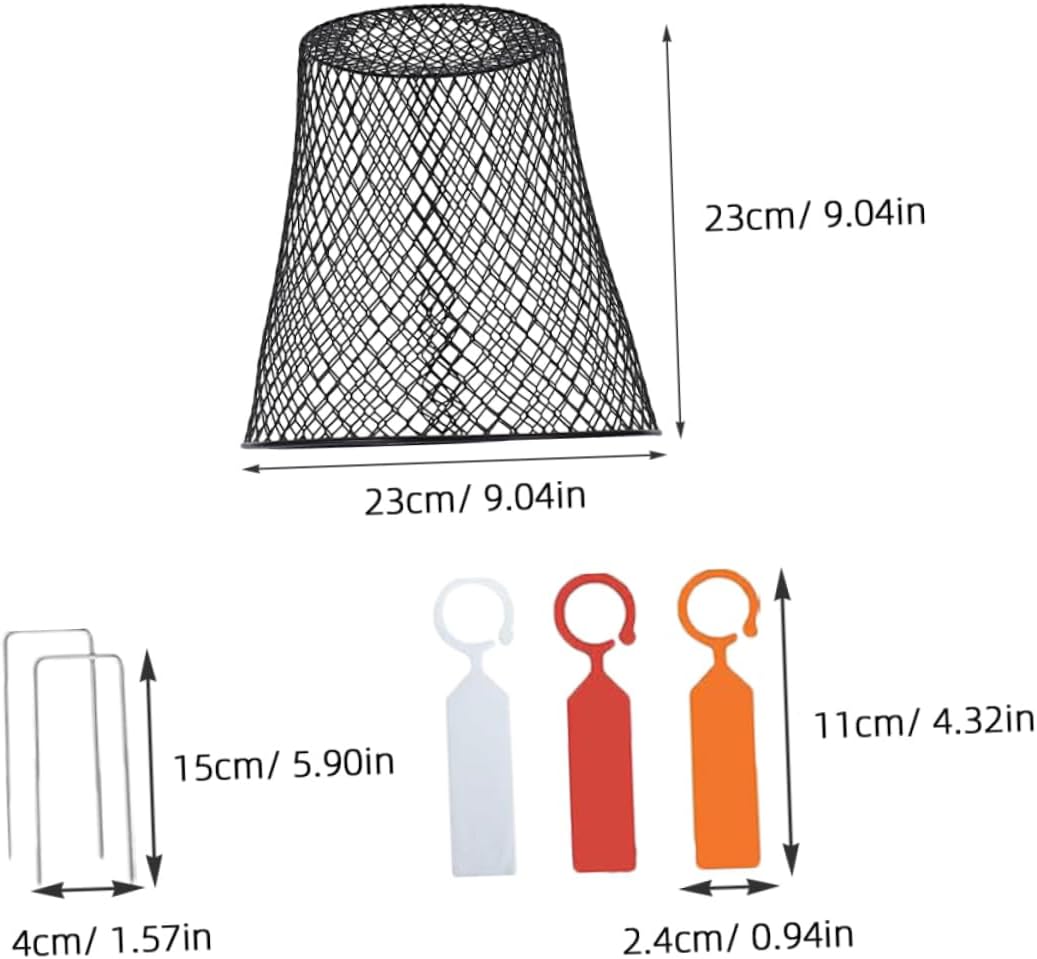 Package List x labels 6 x stakes 2 x mesh covers Features -Space-Optimized:The detachable design makes it easy to clean and store, saving space when not in use iron plant protection cover -Size:23.00X23.00X15.00cm/9.04X9.04X5.89in(cover) stakes for plant covers -Multi-Purpose Design:Versatile for various gardening needs, from nurturing to protecting vegetables plant protection cover -Size:11.00X2.40X0.10cm/4.32X0.94X0.04in(label) wire plant cover -Size:15.00X4.00X0.25cm/5.89X1.57X0.10in(stake) garden cloches for plants -Color:Black plant protection cage -Material:Iron protective cover -Wide-Ranging:Its extensive coverage area keeps at bay, allowing your plants to thrive and plant protection dome -Solid And Enduring:Constructed from iron, this protective cover ensures your plants remain from external threats wire plant protector - Elegant And :Enhances your garden's aesthetic while the health and growth of your plants plant pot protection coverGoods Informationfruit plant protector Enhance your gardening experience with our wire plant protector.protective provides a secure environment for your plants, shielding them from harsh weather conditions and animal interference.garden cover The spacious design accommodates a variety of plant sizes, ensuring comprehensive protection.vegetable protection cover Its lightweight yet robust construction makes it easy to move and reposition as needed