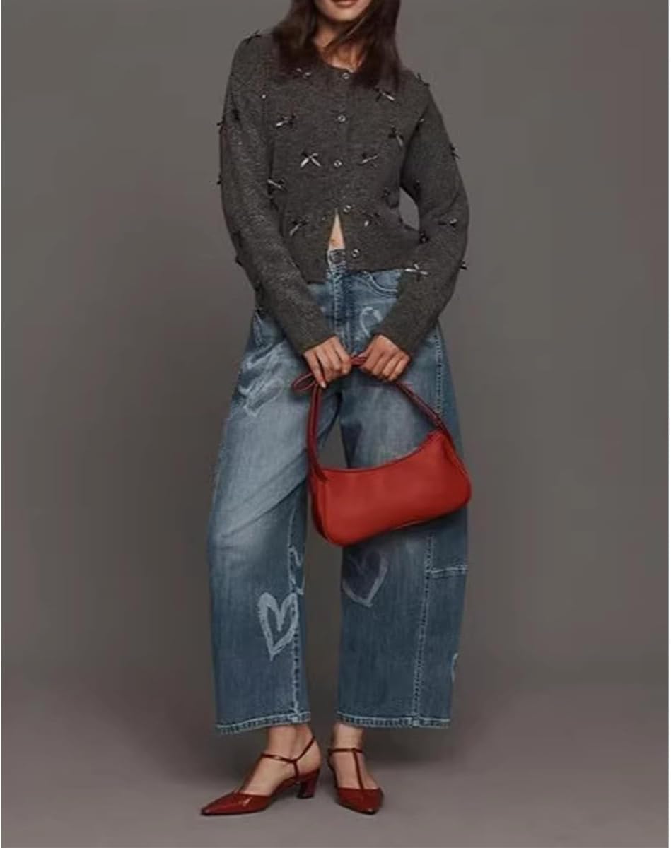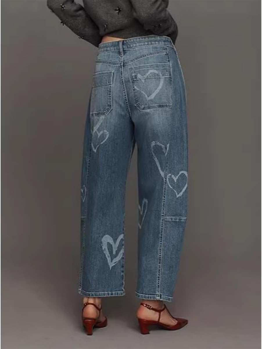 Elevate your casual wardrobe with these charming wide leg cropped jeans—where comfort, playfulness, and on-trend style converge! Crafted from premium soft stretchy denim, these pants wrap you in breathable all-day comfort: skin-friendly, durable, and designed to retain their shape through repeated wears and washes.The trendy wide leg & cropped silhouette delivers a relaxed, laid-back vibe that suits various body types, while the cute heart embellishments across the pants add a playful, distinctive touch—turning basic denim into a head-turning, personality-filled piece. The loose fit ensures unrestricted movement, making them perfect for busy daily routines or relaxed outings.Versatile enough for any casual moment: pair with a cropped sweater for a cozy daily outfit, dress up with a blouse and heels for a casual date, or keep it relaxed with a tee and sneakers for weekend errands. No matter how you style it, these jeans balance comfort and playful trendy flair perfectly.To keep your jeans looking fresh and the heart embellishments intact, follow simple care guidelines: machine wash cold with similar colors, tumble dry on low heat, skip bleaching, and iron on a low setting if needed—easy upkeep for long-lasting wear.
