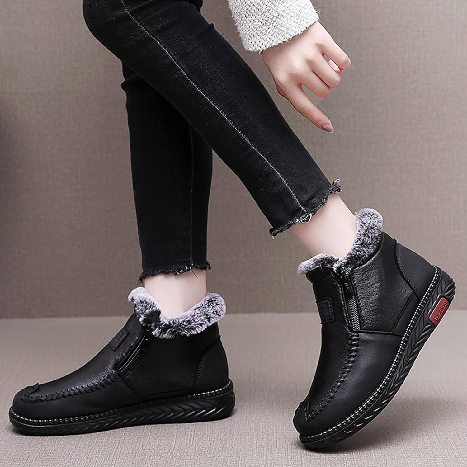 Durable Water-Resistant Leather Crafted from quality leather that effectively repels moisture and snow while offering reliable protection against winter elements. Plush Warm Interior Lining Features a thick soft plush lining that provides exceptional insulation and cozy comfort in freezing temperatures. Convenient Side Zipper Design Offers easy slip-on wear with a smooth-functioning zipper that accommodates the loose-fitting design. Comfortable Loose-Fitting Round Toe Generous round toe design allows for thicker socks and natural toe movement preventing constriction. Stable Platform Flat Sole Built with a substantial platform sole that provides enhanced ground clearance and comfort without heels. Advanced Non-Slip Traction Engineered with a winter-specific rubber outsole that delivers reliable grip on snow and icy surfaces. Ankle High Winter Boots The practical ankle height provides essential coverage while maintaining easy mobility and comfort. Outdoor Activity Ready Specifically designed for winter outdoor activities with excellent insulation and weather resistance. All-Day Warm Comfort From the insulated lining to the flexible construction every element ensures warmth and comfort during extended wear.