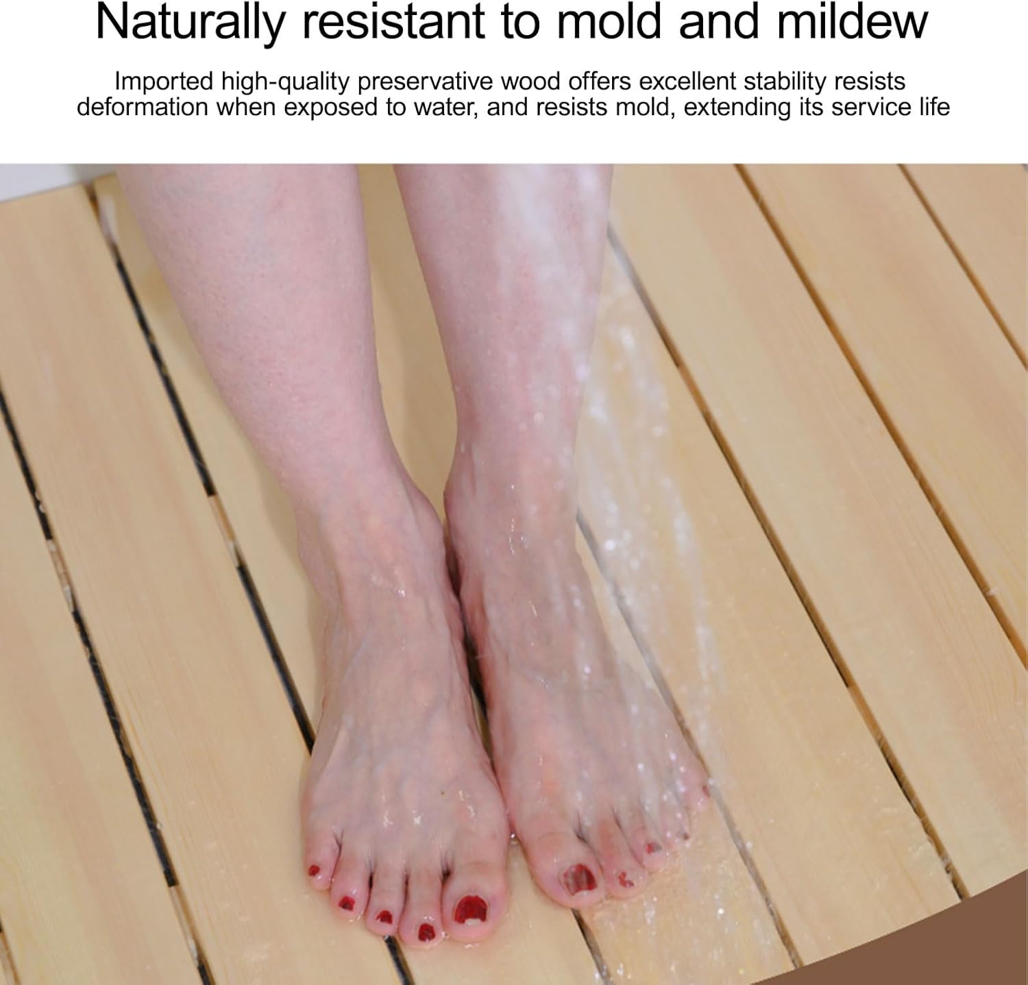 >>This wooden bath mat is perfect for bathrooms or saunas. Its fine craftsmanship elevates these spaces and showcases your refined taste. It's the perfect alternative to regular bath mats.--[Product Details]>>Comfortable, non-slip, and waterproof.Multiple polishing processes create a smooth, solid wood surface for a comfortable feel. Made from premium, non-slip, and anti-corrosion pine wood.>>Convenient and convenient handles.The portable handle design makes it easy for women to lift.>>Thick, durable board with high pressure resistance.Natural pine wood, strong, pressure-resistant, and safe to use.>>Polished edges and corners.Smooth, safe, and reliable.>>Non-slip latex mat.Slip-resistant and fall-resistant for bathing.>>Sturdy hardware.Selected Hardware, reinforced footrest, rust-resistant, durable>>Solid Wood TextureClear wood grain, unique and natural, for enhanced comfort---[Product Specifications]>>Product Name: Wooden Bathroom Mat>>Material: Pine>>Color: Natural Wood>>Default Specifications: Length x Width>>Length: 30-100cm/11.8-39.3in>>Width: 30-90cm/11.8-35.4in>>Packaging: 1 solid wooden bathroom mat