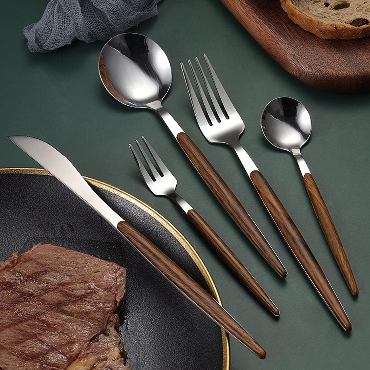 • 🍽【High Quality Materials】:This flatware set is made of high quality stainless steel which is very durable, rust-proof, corrosion resistant, free, no metal aftertaste. Meanwhile, its sturdiness ensures that it will not bend easily providing you with long term use.
