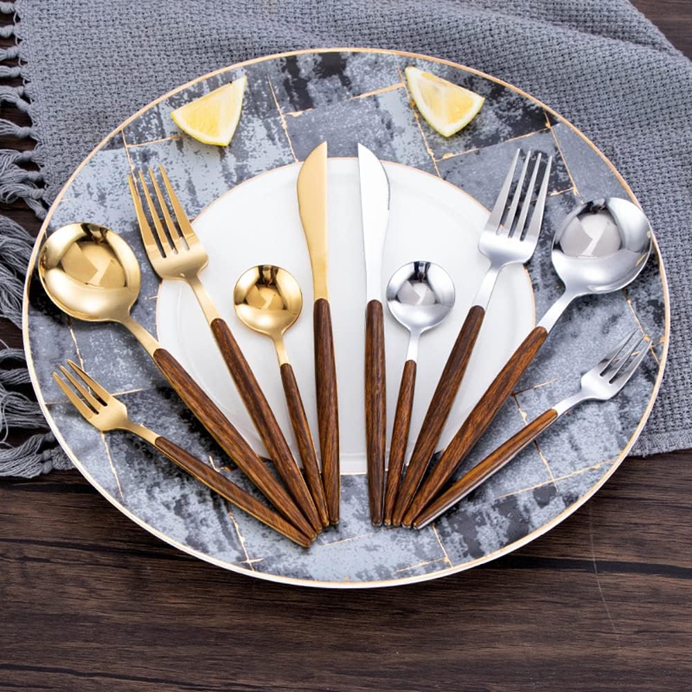 TWEE Silverware Set: Silverware Set is made of stainless steel. Simple and elegant design can well match your kitchen style and dinnerware. Proper thickness and smooth edges for holding comfortable.It is suitable for all kinds of scenes, not only tableware, but also art of life. Characteristic: -Stainless steel, healthy and durable -Exquisite appearance and attention to details -Smooth edge, ergonomic design, comfortable to hold -It can be used as a gift and for daily use, and is suitable for home kitchens, restaurants, parties, Christmas, weddings and other occasions Using Instruction: 1.Please wash the flatware set before first use to make sure no manufacturing residue. 2.Please clean the cutlery set after using and dry the pieces for their durability. 3.Please do not use iron wire to scratch the pieces to keep their smooth surface. 4.The tableware set can be used in hand washing and dishwasher, but hand washing is the ideal method for keep the beauty of your flatware.