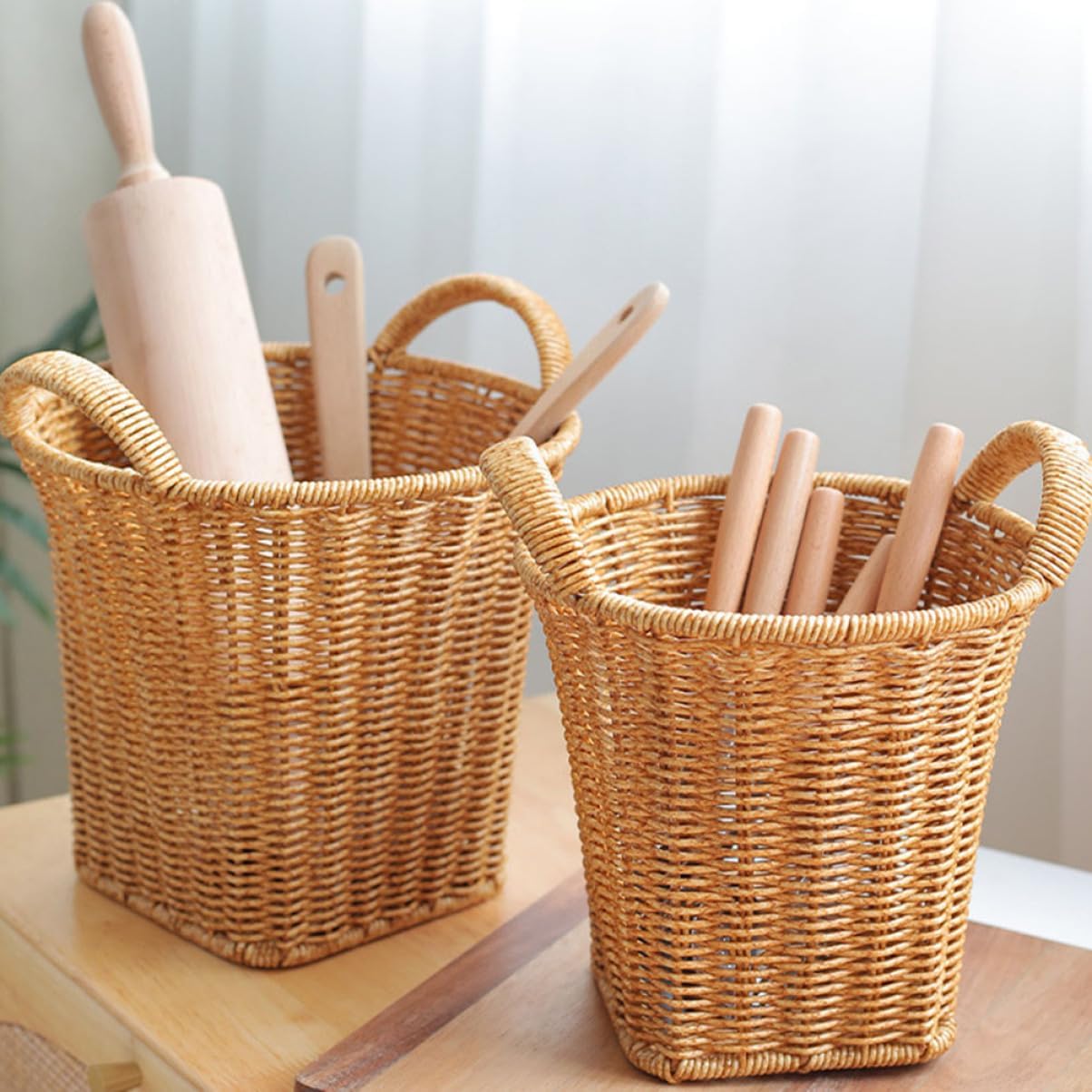 Package Include 1 x Basket Characteristics -Color:Brown woven basket -Material:PE plastic rattan Flower storage basket -Size:31.50X31.50X26.50cm/12.38X12.38X10.41in Decorative woven Basket - Portable for you to carry and hold. With beautiful weaving lines, it can be used as a basket or decoration serving basket. - for outdoor wine festivals, family picnics, camping or just a night out in the backyard! Shop Basket - This woven basket can hold treats, skincare, treats, flowers, books, snacks, fruit and so on storage basket. - Imitation Rattan Basket can be used in all kinds of scenes, festivals, etc., to add a beautiful wind Vegetable Basket. - Owning the and break resistance ability, very practical, with excellent texture party fruits woven basket.Goods Descriptionkitchen basket The woven storage basket is a great addition to any room.Decorative woven Basket Fruit basket is made of PE plastic rattan material, and the basket is not only for daily uses, but also a handicraft, delicate and beautiful, for storing fruit and snack.serving basket Multi-purpose design: can be used for flower arrangement, storage of miscellaneous items, and more