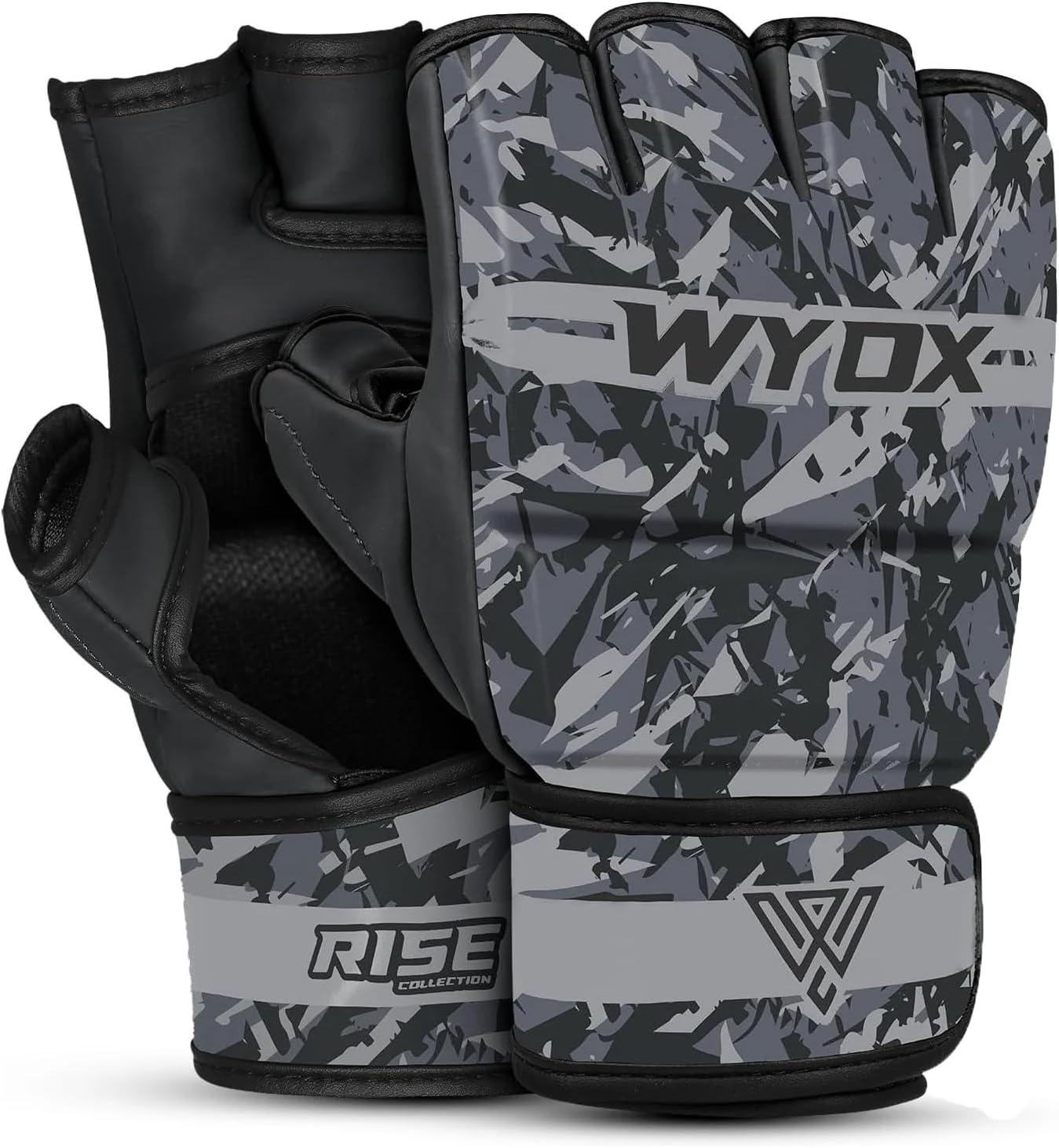 WYOX Boxing & MMA Training Gloves Set - Complete Protection & Support for Your Workouts Enhance your training with the WYOX Boxing & MMA Training Gloves Set, expertly designed to provide ultimate protection and comfort for all your high-impact activities. This set combines premium boxing inner gloves with durable MMA grappling gloves, ensuring your hands and wrists are fully supported during intense sessions. Whether you're training for Muay Thai, MMA, Kickboxing, or general fitness, this versatile bundle is crafted for athletes who demand top-tier performance and durability. Key Features: Enhanced Hand Protection: Thick gel padding in the inner gloves absorbs impact, reducing hand strain during punching bag workouts, sparring, and kickboxing. Superior Wrist Support: 80cm elasticated wrist wraps provide exceptional stability, keeping wrists injury-free during rigorous boxing and MMA training. Durable Construction: Made from high-quality materials including reinforced Maya Hide leather, these gloves are built to last through the toughest training sessions.