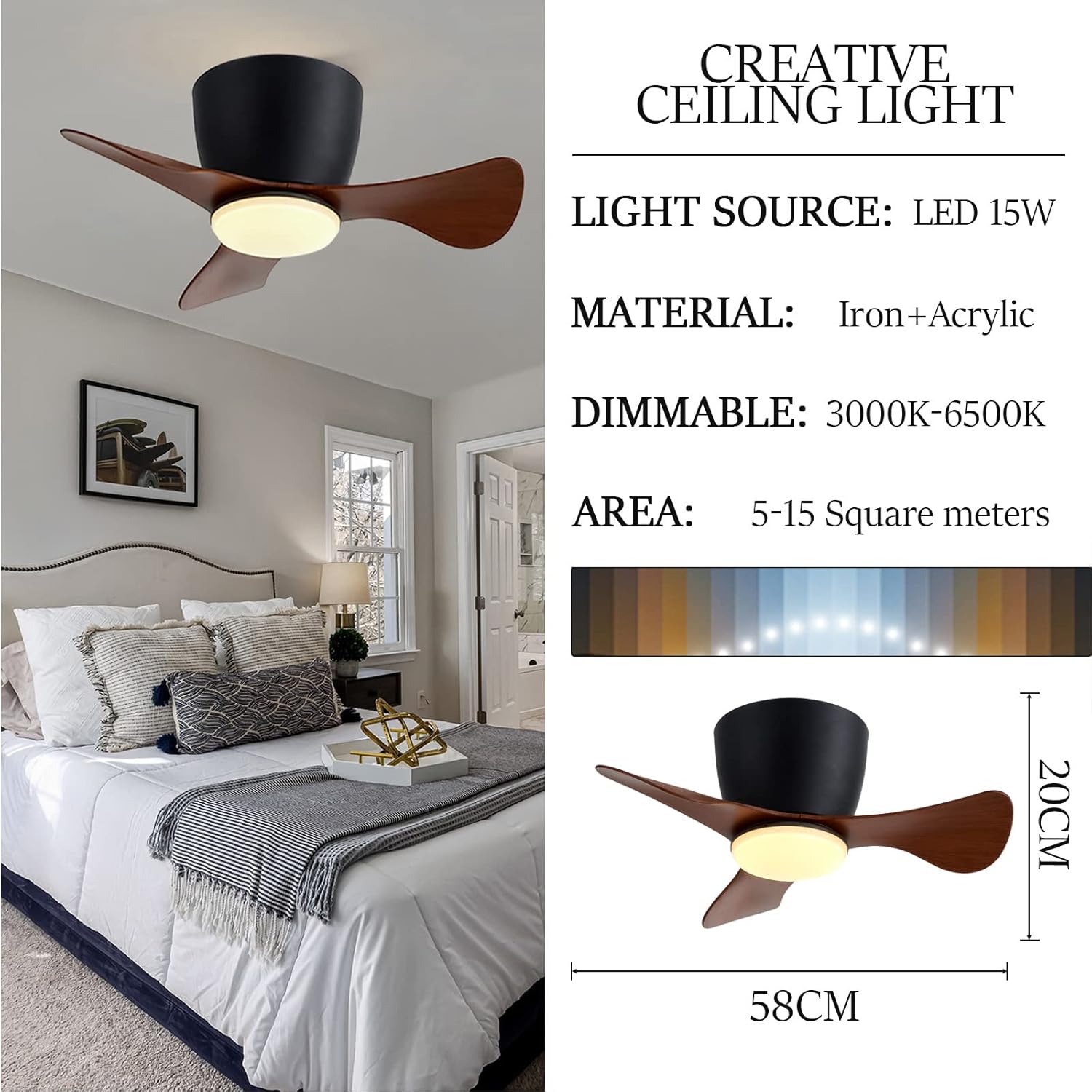YUEGOO Ceiling Fans with Lamps,Modern Small Led Dimmable Silent Ceiling Fan with Lighting Dc Reversible 6 Speed Timer Chandelier Fan Winter Summer Mode for Bedroom Kitchen/B