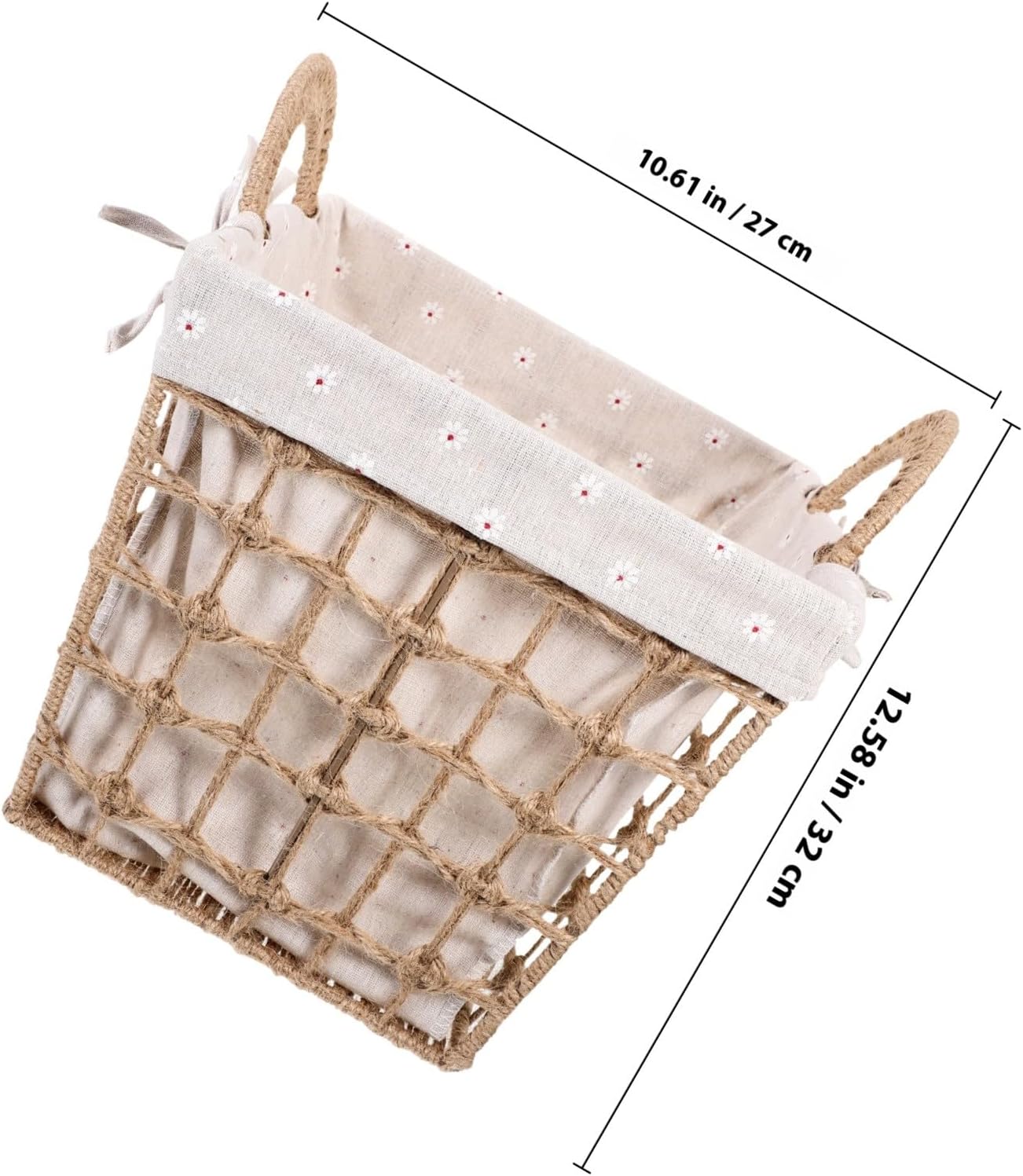 Package List 1 x Basket Characteristics - Size: 32.00X27.00X27.00cm/12.58X10.61X10.61in -Material:Hemp rope, iron, linen -Product Info:Braided storage basket - The woven basket easily matches your interior decor and bring some natural beauty to any interior space storage baskets for organizing. - Can be a good and practical for friends or lovers at festivals, also as housewarming or Christmas braided cotton knitting basket. - ColorLight Brown - Great for fruit, vegetables, bread, food serving, storage or display, as well as store keys, wallet and more Woven Sundries Organizer. - The woven storage basket can be used for snacks, cosmetics and other household sundry storage weaved baskets storage. - The rustic decorative basket is great for desktop items storage, suitable for every corner of the house baskets with handle.Goods Informationbasket storage The basket is a multi-use storage container, utility and suitable for anywhere in the house.containers for organizing This woven basket help you keep important item and clutter tidy and in one place where you could get it quickly.Storage Basket With Liner The woven handicraft basket with liner can add elegance and warmth feel to your home