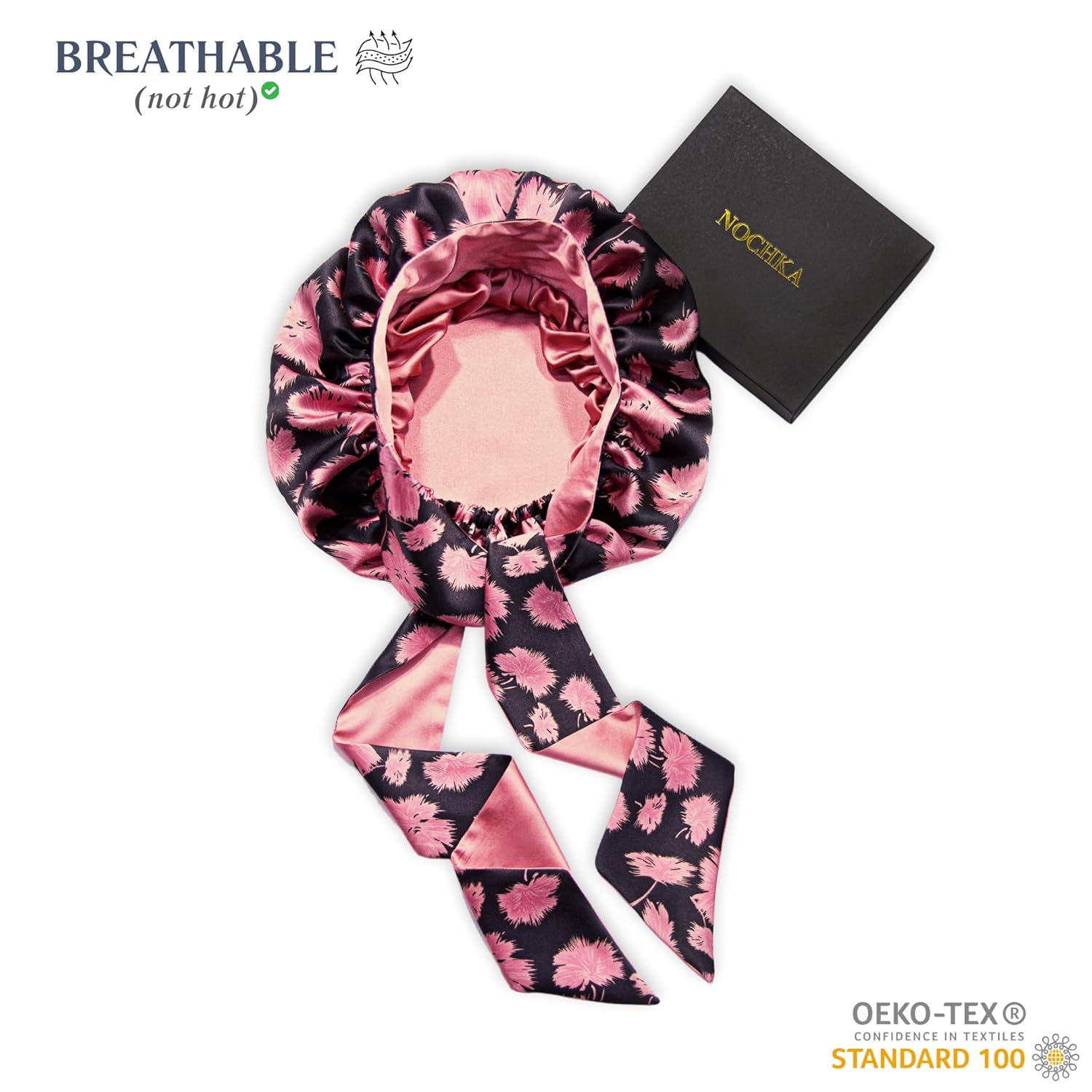 Experience luxury hair protection with our 100% mulberry silk bonnet with ties, handmade in the USA for superior quality. Designed for curly, long, and natural hair, this double-layer, 19 momme reversible sleeping cap keeps hair frizz-free, moisturized, and protected overnight. The adjustable stay-on tie band ensures a secure fit, making it the perfect silk bonnet for sleeping and daily hair care essential.