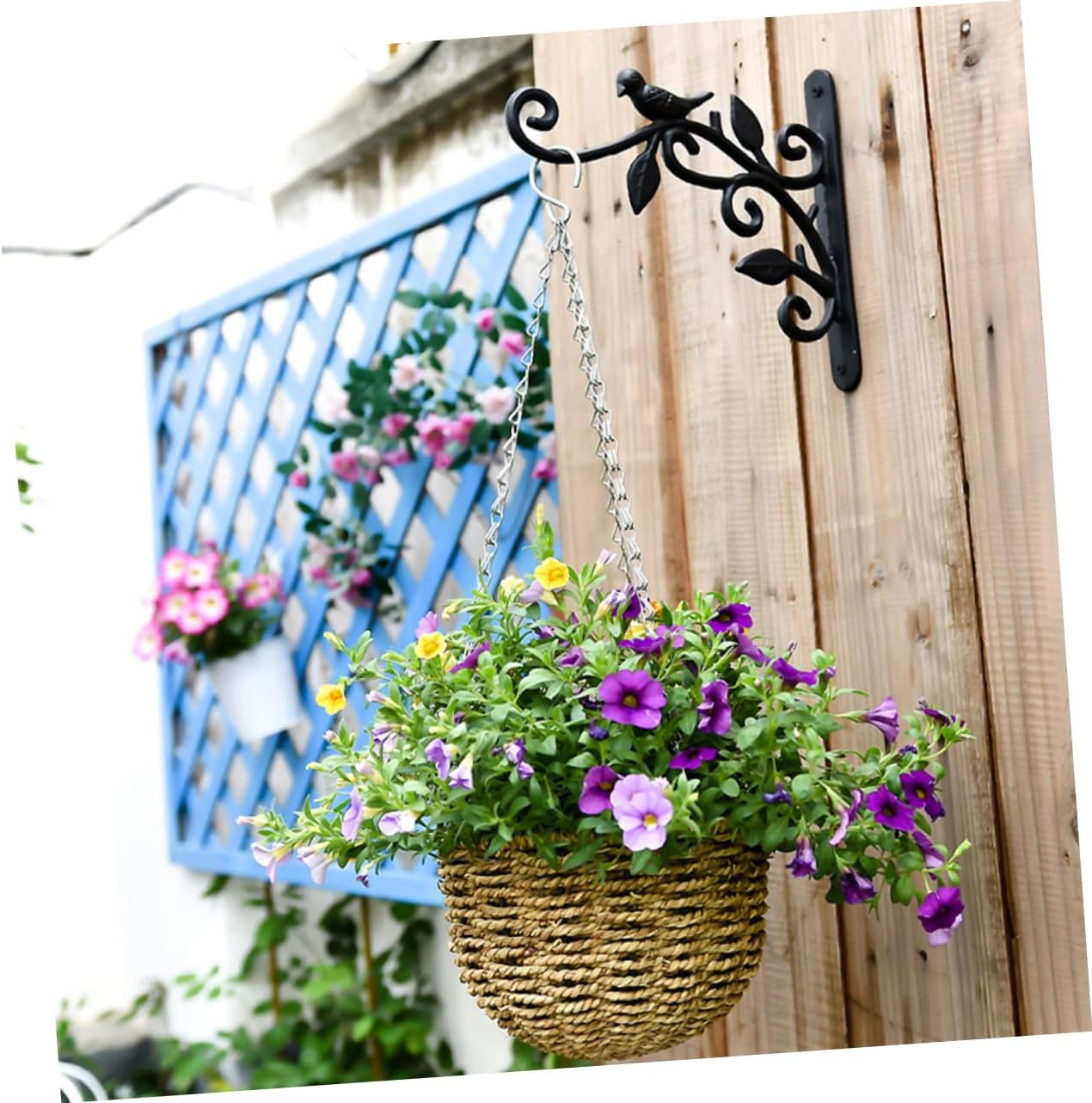 Package Include 2 x Plant Bracket Hooks 4 x Screws 4 x Bolts Characteristics -Color:Black wall mount hanging hook -Size:25.00X22.00X2.00cm/9.82X8.65X0.79in Hook for Hanging -Material:Iron bird feeder hanging rack - This is a very effective display and decorate your bird feeder in your home, well-made and has a smooth finish metal hook. - The wall hanging hook is made of safe metal iron material, which is convenient and practical storage hook. - for hanging bird feeders, lanterns, pots, pots, holiday decorations, and more hanging planter hook. - Very simple and chic color design, looks elegant and stylish, easy to match your garden or backyard hook. - The planter hanger is for gardens, balconies, patios, hallways, indoor and outdoor decoration wall plant hanger.Goods InformationHanging Plant Hanger Looks great within a variety of different environments.wall hanging planter bracket There is a hanging planter hook.hanging plant bracket Add a touch of vintage beauty to an entryway, patio, porch, garden, room, dining room, bedroom, or any other indoor-outdoor place