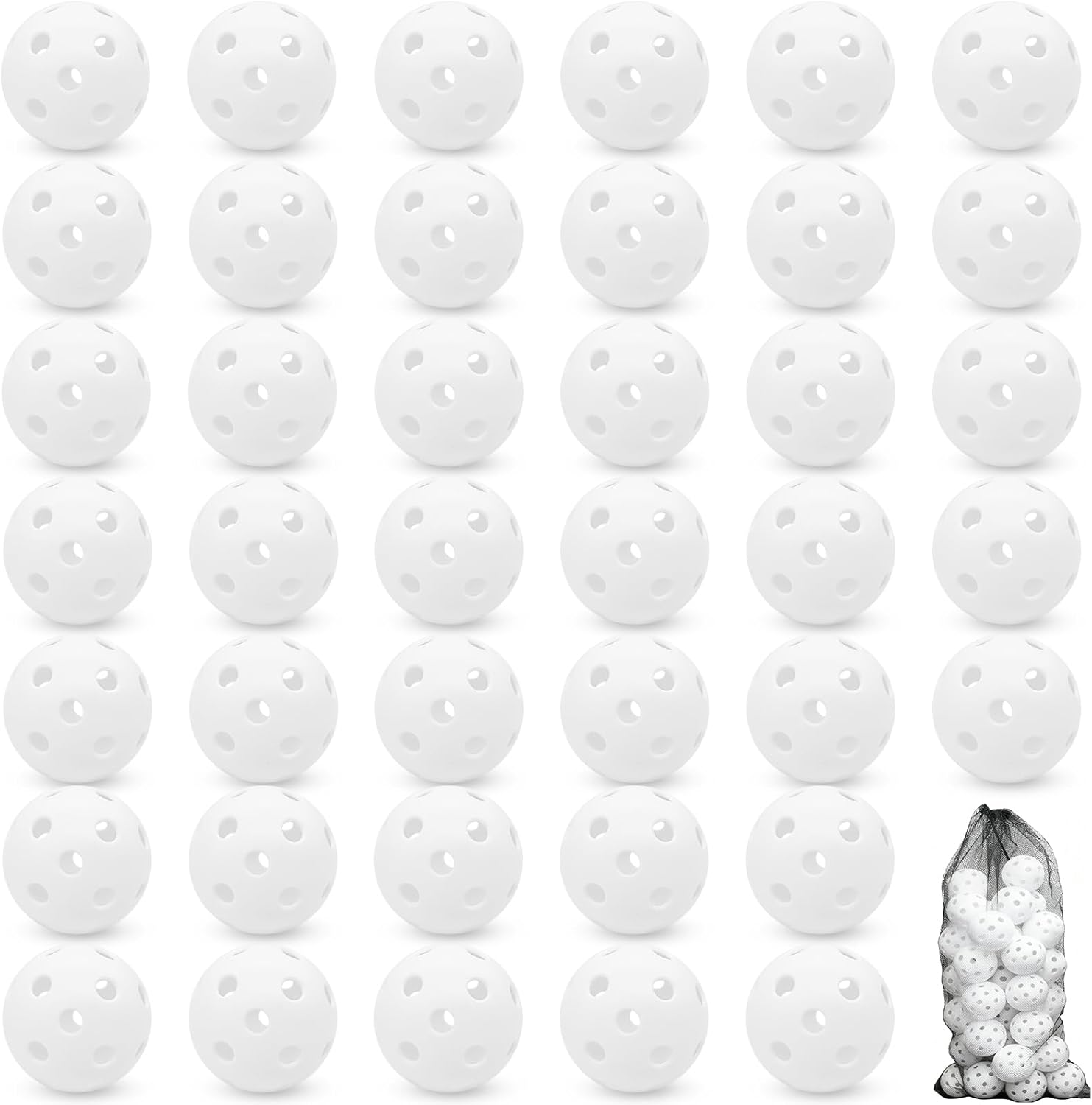 Enhance your baseball training experience with our 40 pack of plastic baseball practice balls. This set includes 40 lightweight, hollow soft balls in eight vibrant colors—green, orange, yellow, white, blue, purple, pink, and red—along with a practical black drawstring bag for easy carrying and storage