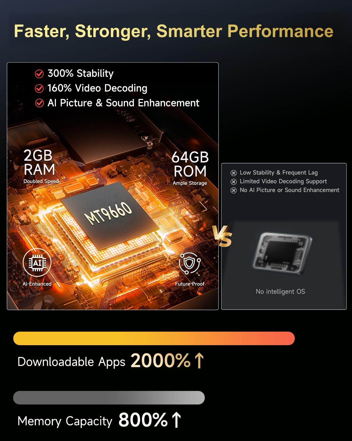 | Additional Features | ①2026 Upgrade: Official System ③Auto Lens Cap④High-Bright 2400 ANSI lumens⑤4K UHD Stunning⑥2×30W Deep Bass⑦DTS Audio with Dolby⑧Latest WiFi6 &Two-way Bluetooth 5.2 ⑨ Auto Focus& Auto 6D Keystone ⑩Lower Noise AI Dynamic Cooling |