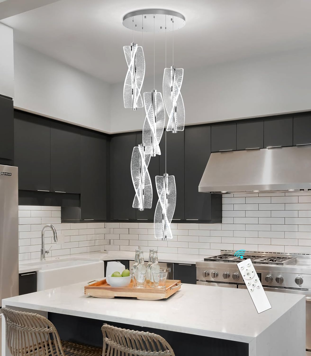5 Lights Modern LED Dimmable Chandelier for Kitchen Island Pendant Lighting Glam Chandelier Dining Room Living Room Bedroom Silver