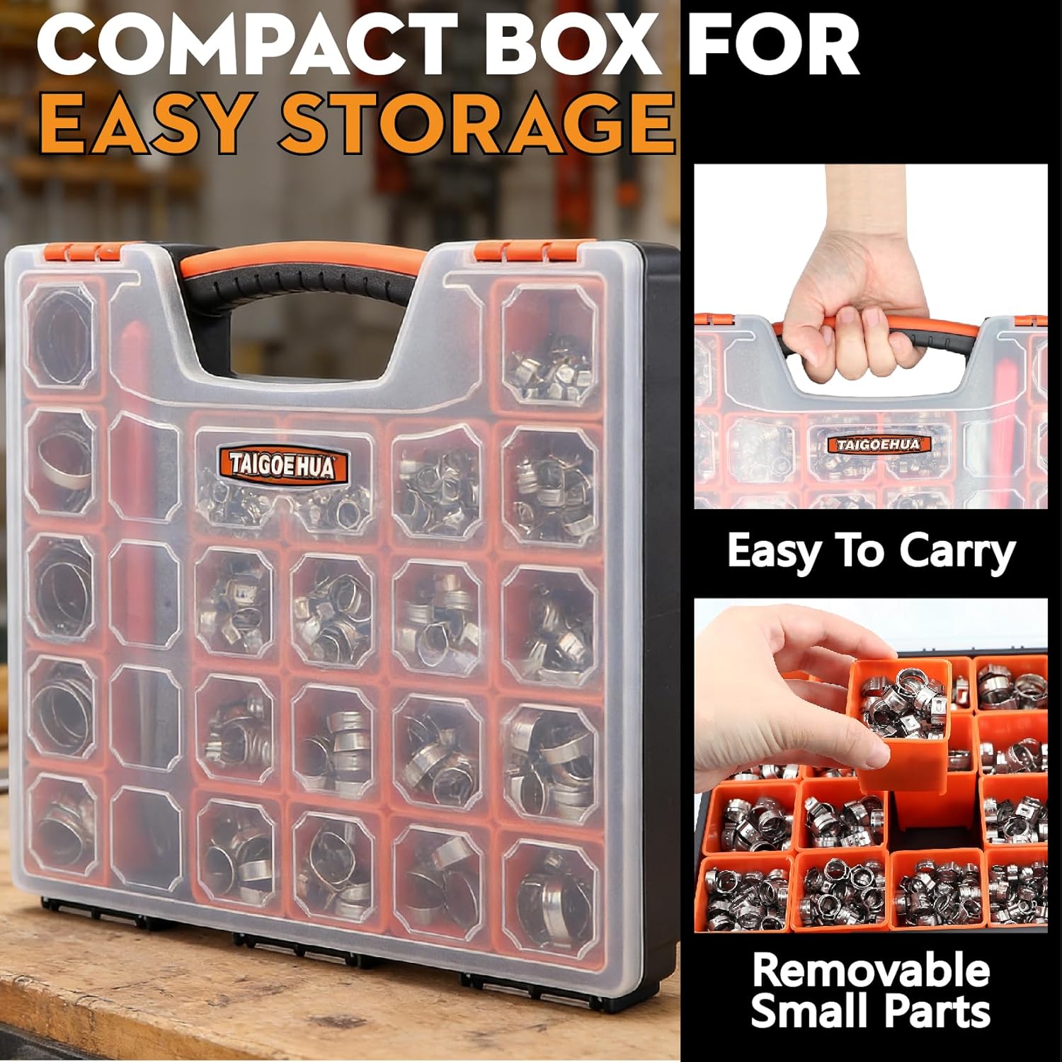 560Pcs 16-Sizes Single Ear Hose Clamps 5.3-36.1mm Stepless 304 Stainless Steel Assortment Kit with Ear Clamp Plier,Pipe Cutter and Tweezers for Automotive,Home Appliance,Fuel Line Pipe,and Industrial