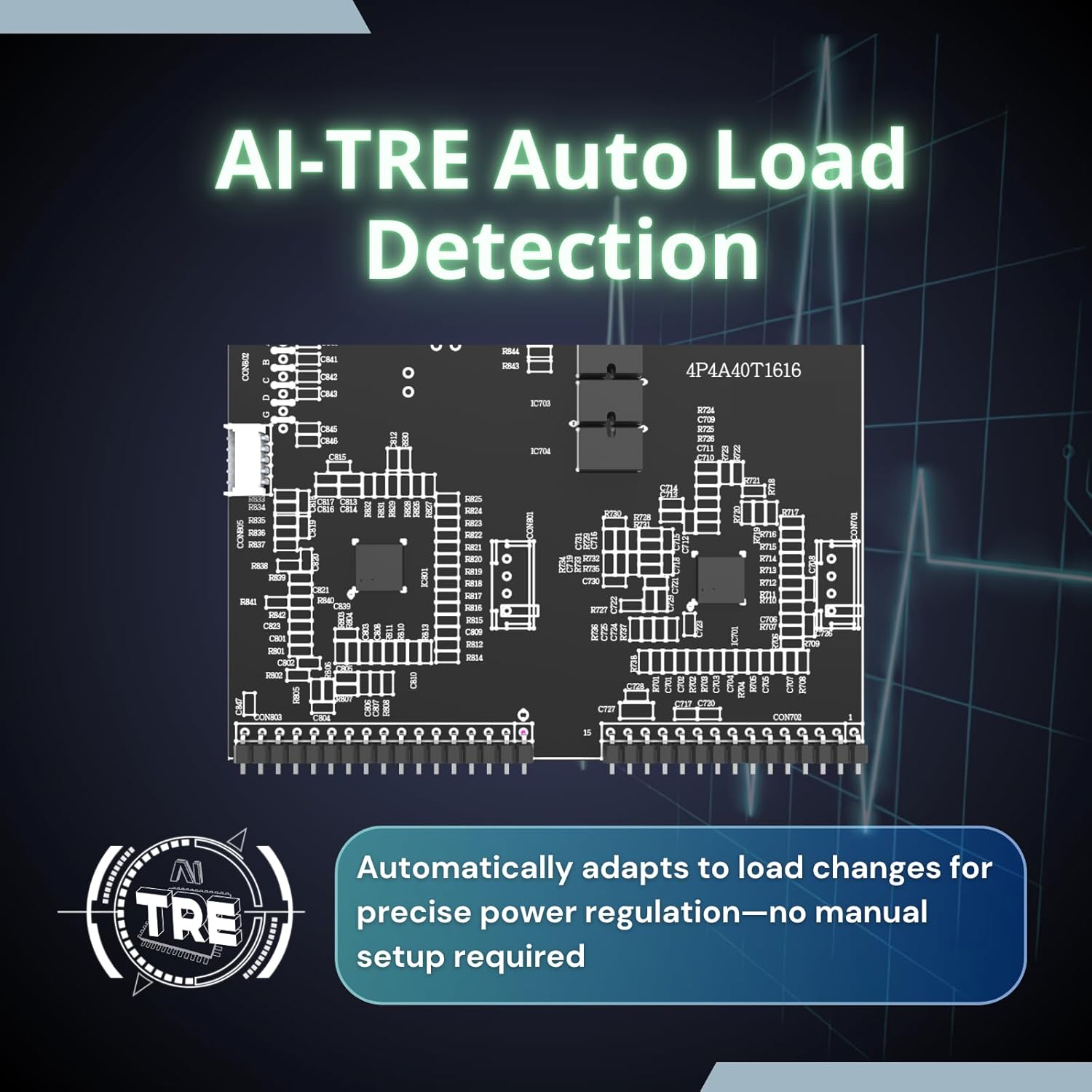Plus Ultra, Excellence in Every Watt The AiBARZA T1616 1616W Titanium PSU delivers dual Titanium-certified efficiency for maximum energy savings and exceptional power stability under extreme loads. Built for AI workstations and high-end gaming PCs, it provides clean, reliable power when performance matters most. AI-TRE smart power regulation instantly adapts to CPU and GPU demand, maintaining precise voltage control while protecting premium graphics cards. AI Turbo Mode unlocks up to 12% more output beyond rated wattage, pushing a 1616W PSU to 1818W with stable, dependable performance. With AI-enhanced dynamic power control, T1616 handles power spikes up to 220%, exceeding PCIe 5.1 and ATX 3.1 standards. Automatic AC voltage detection intelligently scales output by input voltage, while four native 12VHPWR connectors deliver high-current power to unleash next-gen GeForce RTX GPUs and demanding AI workloads.
