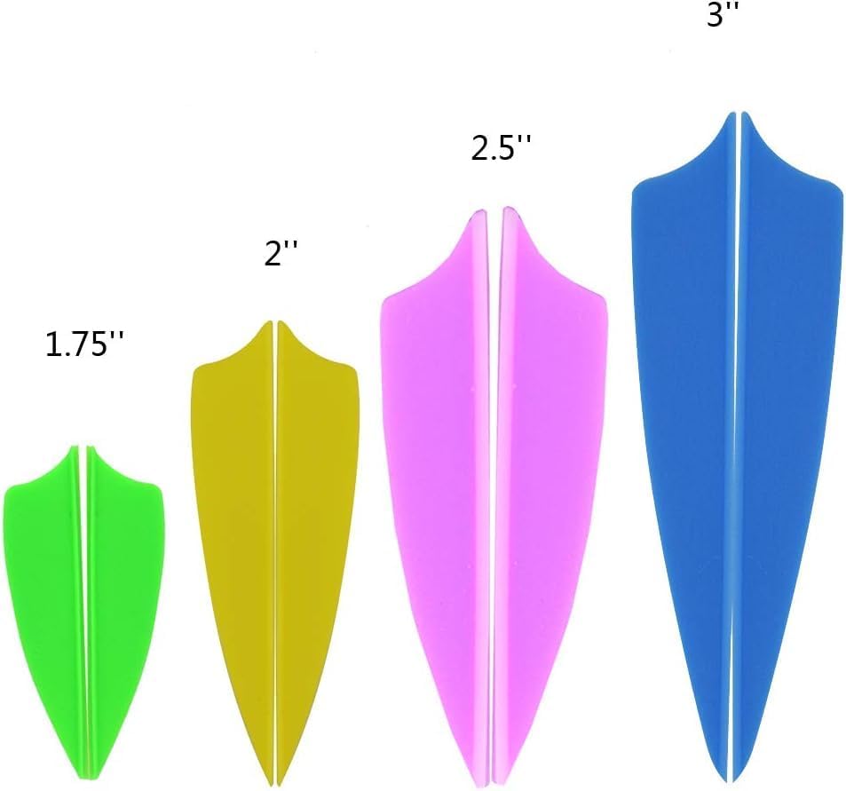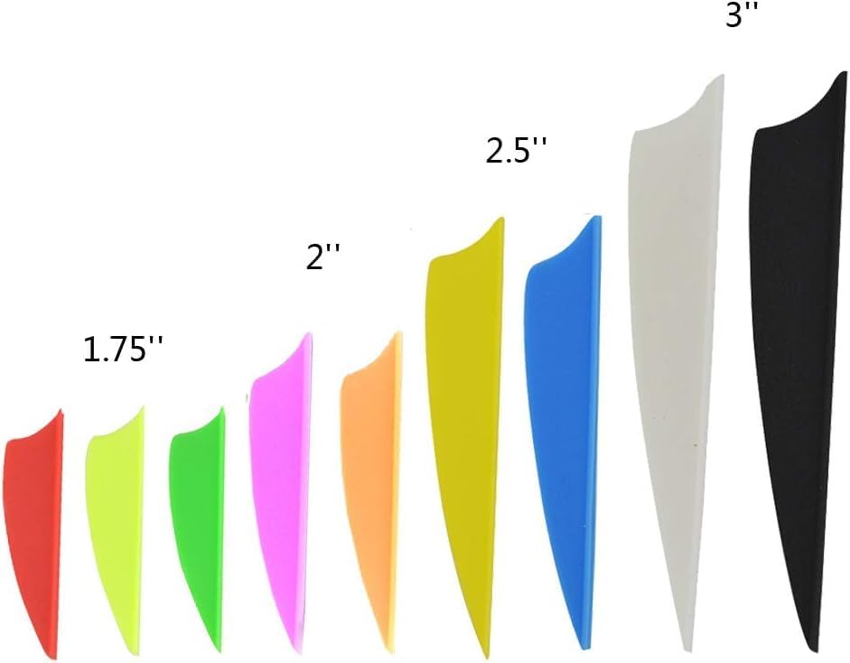 Product Details Material: Rubber Packing: 100pcs Size:1.75/2/2.5/3inch Net weight:0.2g Type:Ahield shape Color:As the picture shows Note:If you want to mix the colors and other typesplease give me a message. Usage: Different kinds of arrowssuch as carbon arrowswood arrowsDIY arrows and so on Features:lightweight and durablequality guaranteed