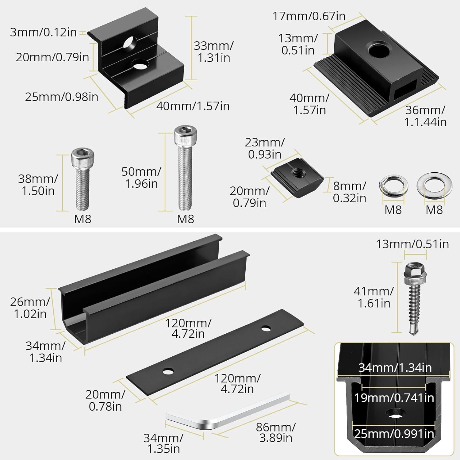 | Set Name | 10 x 4.72 in Rails + 4 end Clamps + 6 Center Clamps + 1 Wrench |