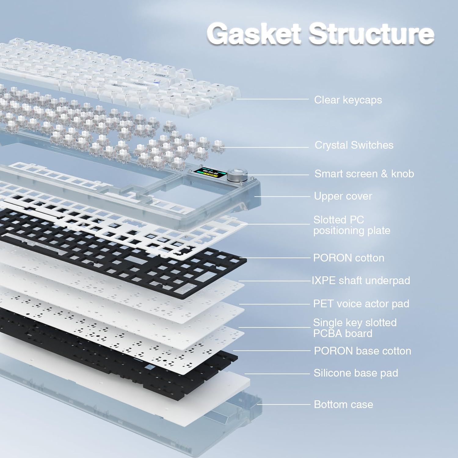| Additional Features | Backlit, Customizable Display Keys, Hot-Swappable, Rechargeable, Transparent Base |