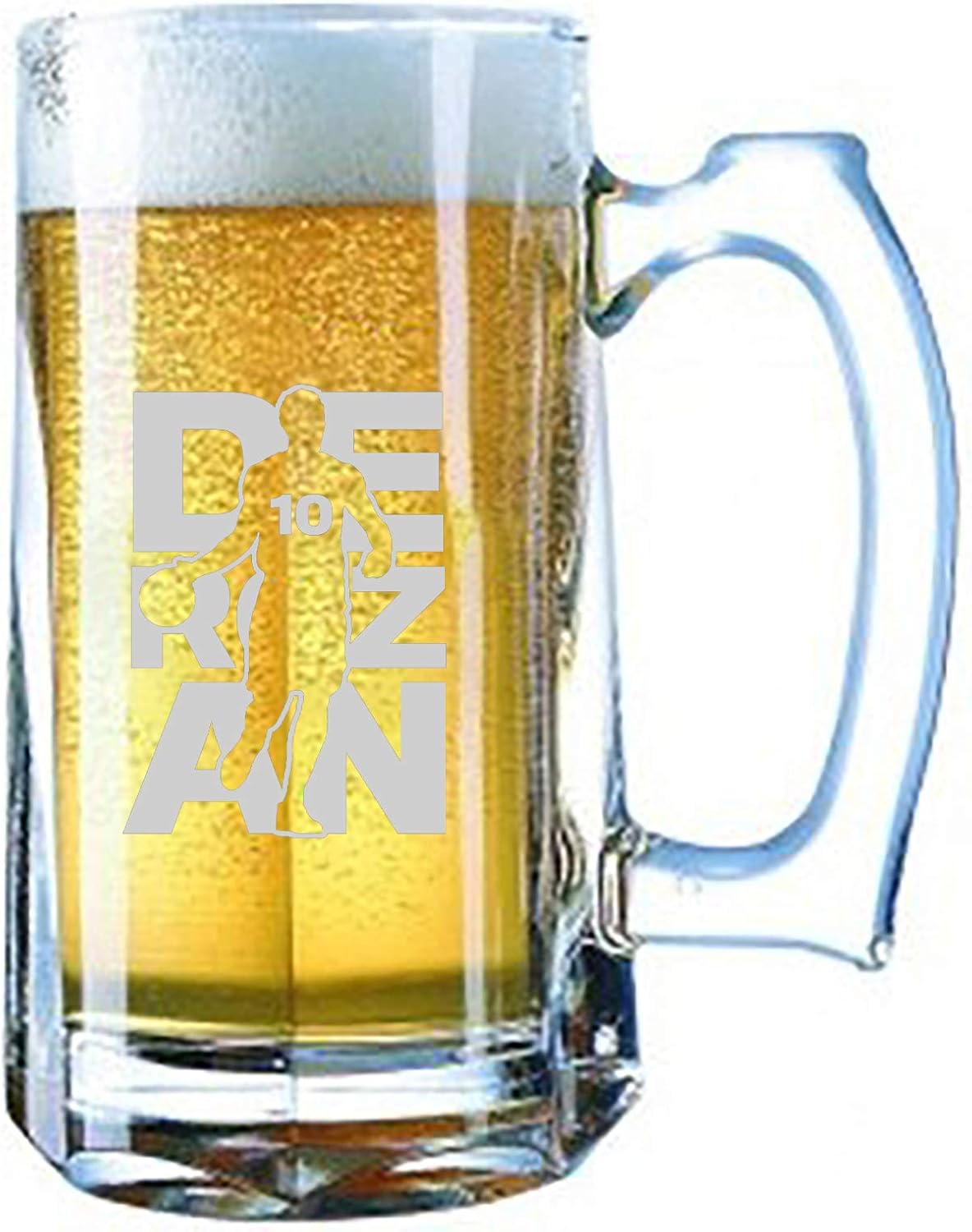 Giant Beer Mug is 7" tall and 28 ounces - you don't have to refill as often! Beautifully Laser Etched Great gift for Mom, Dad, Grandpa, Grandma, Aunt, Uncle or your Friend! Heavy duty high quality glass. Shipped and well packaged in crush proof box