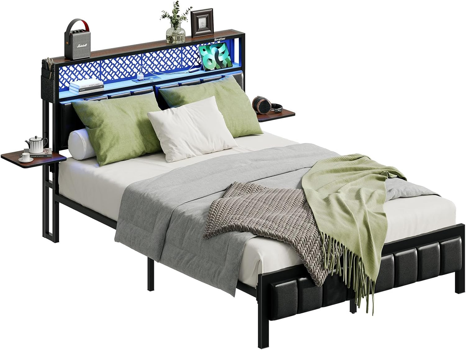 | Other Special Features of the Product | 2-Tier Shelves, Foldable Bedside Shelves, Metal Bed Frame, Upholstered Headboard, Wooden Headboard |