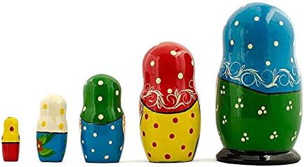 -Wood , Gouache, Lacquer -Hand Painted -5 pieces/ 5.5 Inches Tall WARNING * Choking hazard * Not recommended for kids under 3 years due to small parts inside.
