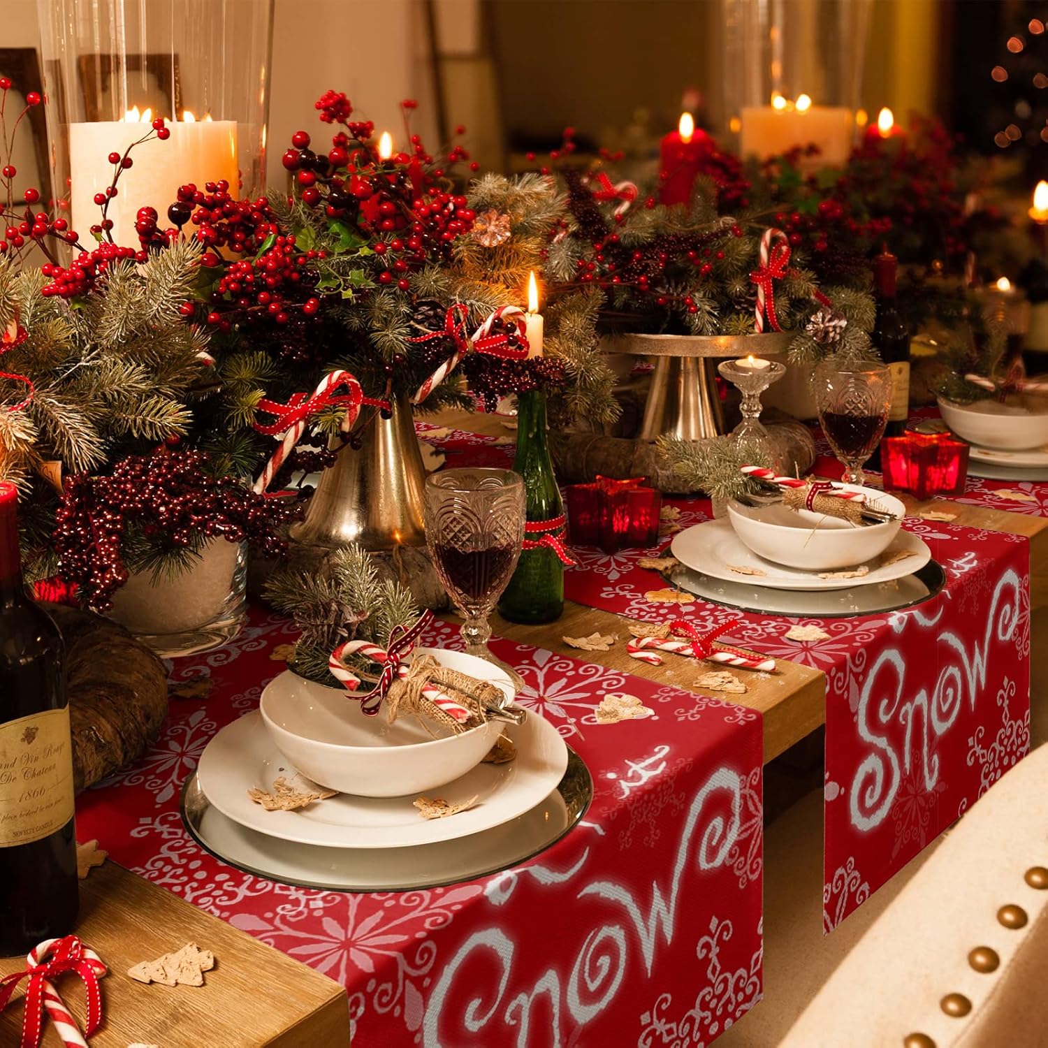 🎊🎅🎉Merry Christmas🎉🎅🎊 🎊🎄🎉Decorate the place you love🎉🎄🎊 Home is where you live for a long time, If we can make your favorite place a beautiful and relaxing place, I believe you will also be happy to decorate it.Choose our table runner,Beautiful and elegant table runner will update your dining room and protect your table. Makes table tidy and organized. Helps you feel comfortable for dining.Update your home decor with this attractive table runner, table decoration with stylish designs will add a fresh touch any room. 🎉⛄🎊Your furniture also needs to be dressed🎉⛄🎊 Various table runners:Providing a selection of different colors and pattern, you are sure to find a one to match your décor. Festival Decorative:Our table runner is the best choice for festival decorative look, like Christmas, party, Valentine's Day, Thanksgiving, Halloween, Wedding, Farmhouse decor, Birthday parties, Family dinner or Everyday Use. 🌟Please treat it tenderly 🌟Machine Washable. 🌟Do not bleach. 🌟Low temperature ironing.