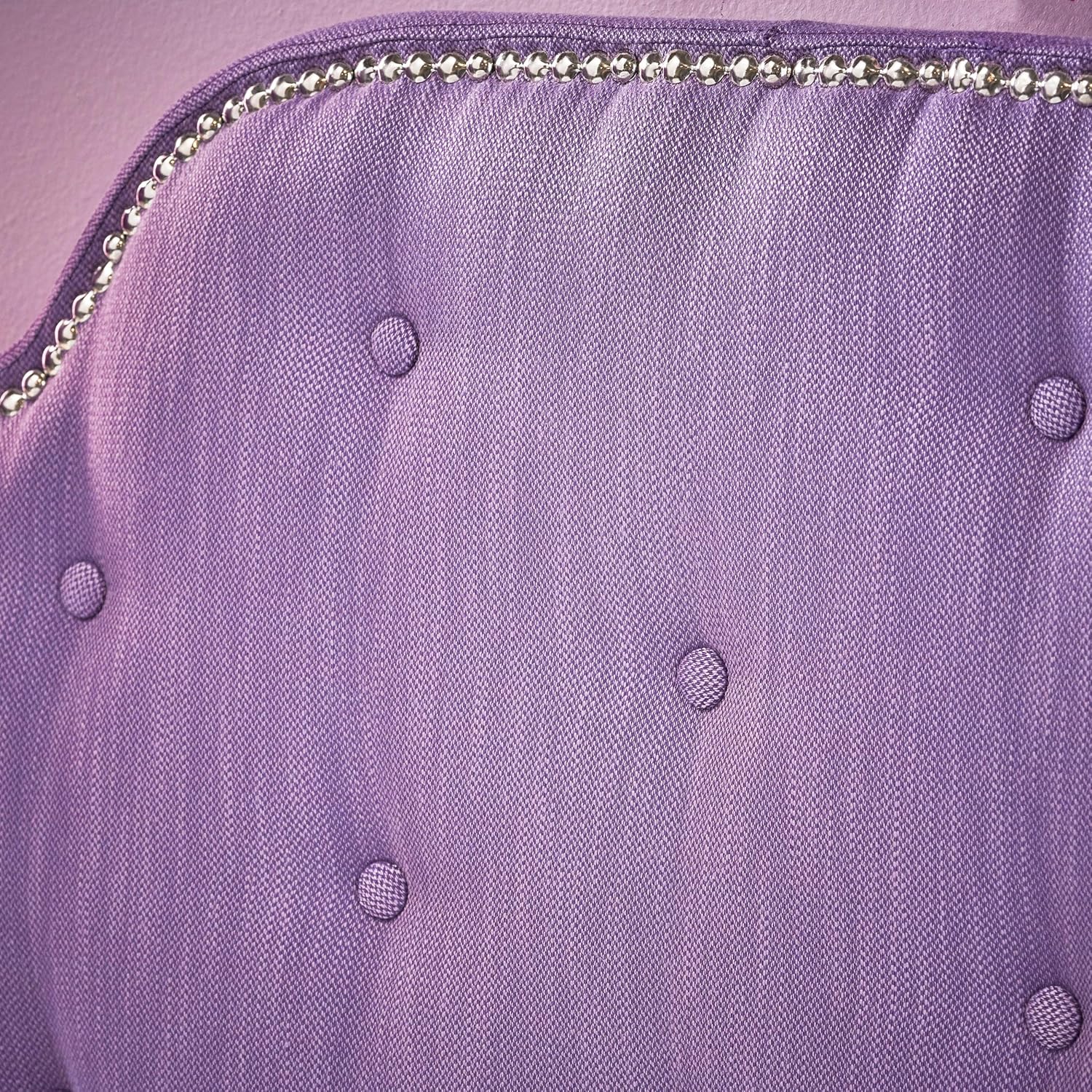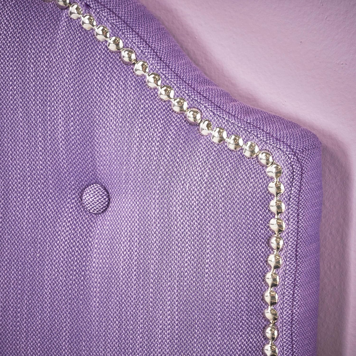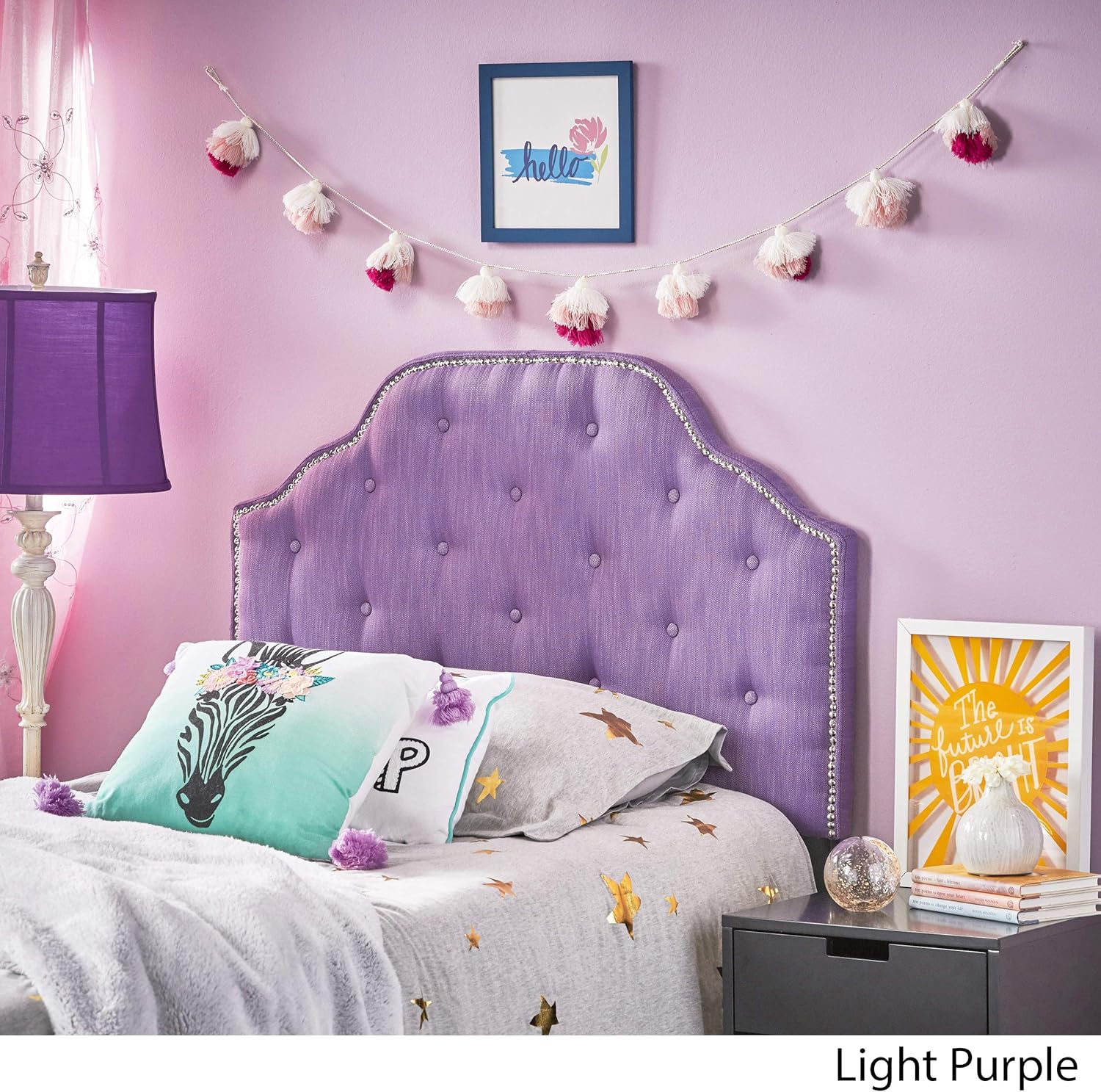 Add some style to your child's bedroom with this headboard. Featuring iron legs that allow you to attach this headboard to virtually any bed frame, This headboard is ideal for any child's bedroom. The added studs of this headboard only add to the overall look and style, adding that little something extra that makes this headboard perfect. Features: Material: fabric leg Material: iron Color: Light Purple leg finish: Black Easy to assemble (tools and instructions included) dimensions: 3.25"D x 41.50"W x 54.25"H.