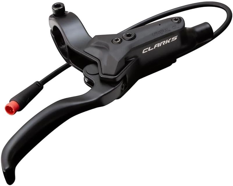 Clarks Cycle Systems Sync-4E E-Bike Front & Rear Hydraulic Disc Brake Set, Black, 180/160mm Rotors, with Motor Shut-Off Sensor, Including Fitting Bolts, Olives & International Standard Adapter Mounts