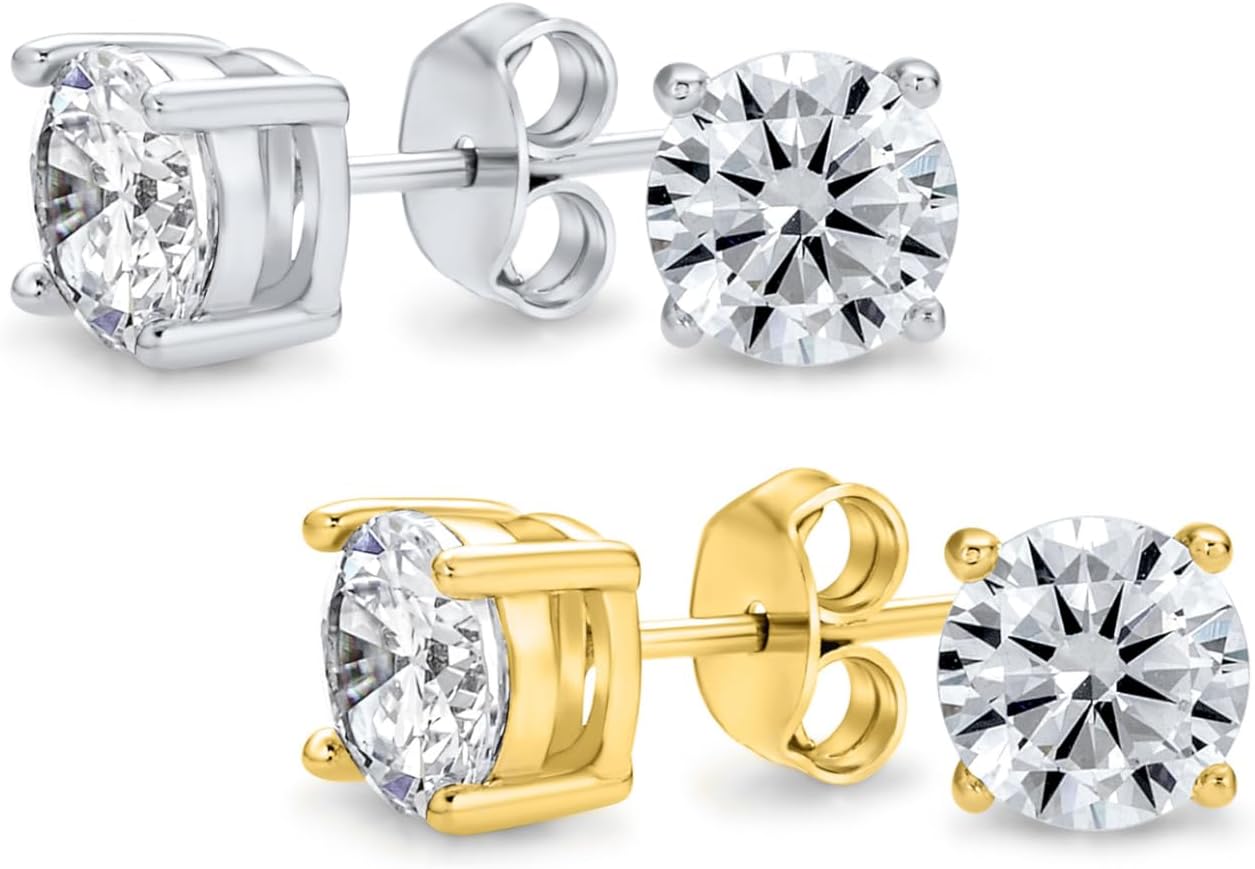 Discover our elegant Unisex Gold Plated CZ Stud Earrings. Crafted with high-quality .925 sterling silver and luxurious gold plating. Each earring showcases a stunning 10mm clear cubic zirconia stone, securely set on 4 prongs. The round cut CZ stones add a modern, sophisticated touch to any outfit. Perfect for everyday wear, these trendy earrings appeal to both men and women. Affordable and prestigious, they make an ideal gift for that special someone. Guaranteed to turn heads and elevate your style.