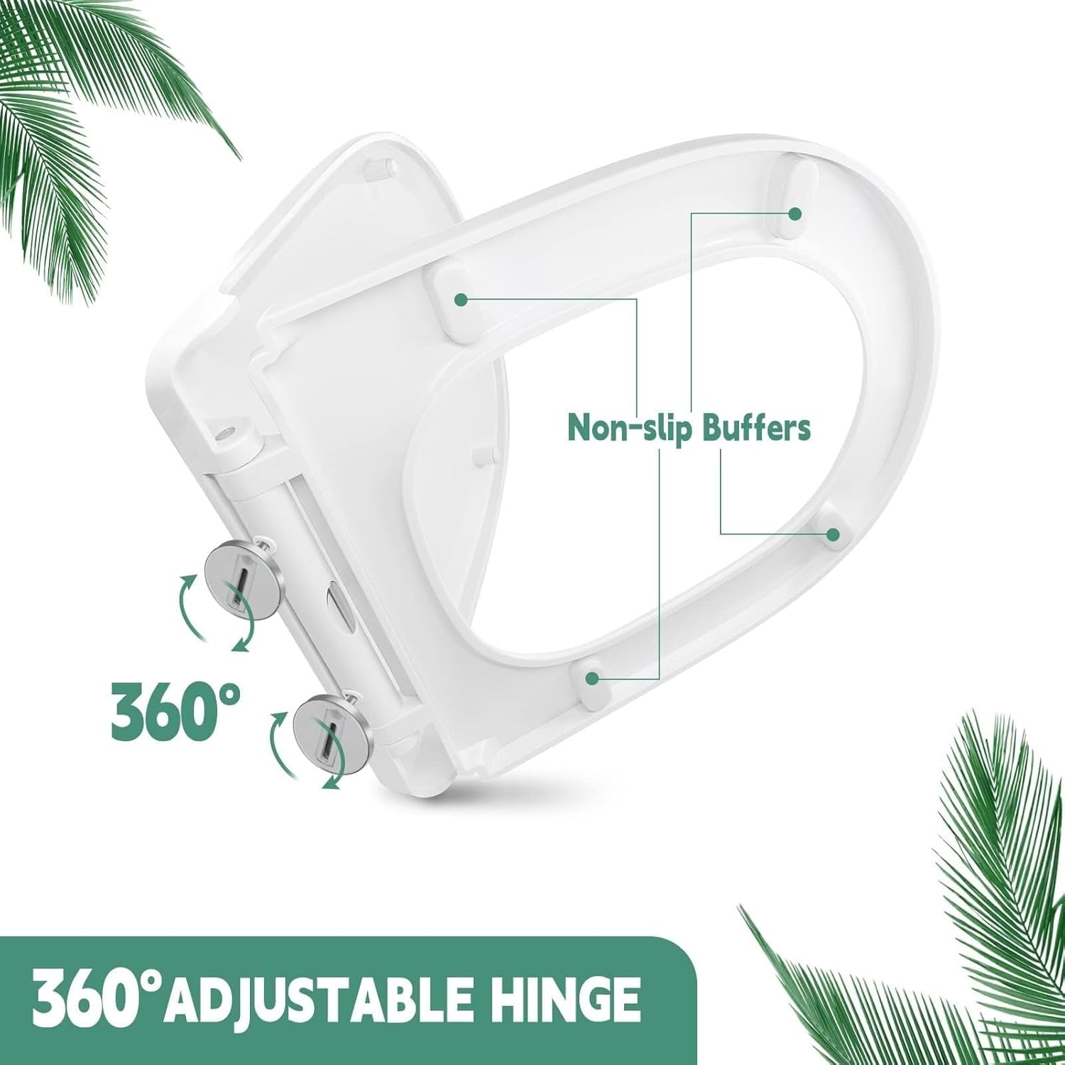 Enhance your bathroom with the D-Shaped Soft Close Toilet Seat. Made from Polypropylene (PP) material, this colorful toilet seat combines durability with style. With an integrated soft-close mechanism, it gently lowers, eliminating loud slams and preventing unwanted noise, perfect for a peaceful bathroom environment.The dual-button quick-release feature makes cleaning a breeze, allowing you to easily remove the seat for thorough maintenance. The 360° adjustable top-fixing hinges ensure a perfect fit for most D-shaped toilets, with hinge adjustments from 65-200mm, providing you with maximum flexibility during installation.Whether you're refreshing your home bathroom or updating a commercial space, this toilet seat fits perfectly with any decor. The reinforced fixings and non-slip dampers keep the seat securely in place, ensuring stability even after prolonged use.Box Includes:1 x Toilet Seat1 x Top Fixing KitAdjustable Hinges (65-200mm)Dimensions:Width: 360mmLength: 460mmMake your bathroom both functional and stylish with this easy-to-install, easy-to-clean, and highly toilet seat. Ideal for homes, restaurants, hotels, or any space in need of a practical, colorful upgrade.