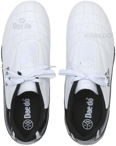 Train in comfort and style with these martial arts shoes featuring a durable synthetic leather upper and a non-slip rubber sole. Built for flexibility and lightweight performance, they allow natural movement for all martial arts techniques while maintaining excellent foot support. The lace-up closure provides a secure, personalized fit, and the sole is designed to offer optimal grip on dojo floors. Suitable for taekwondo, karate, kung fu, and other martial arts disciplines, these shoes are perfect for both training and demonstrations.