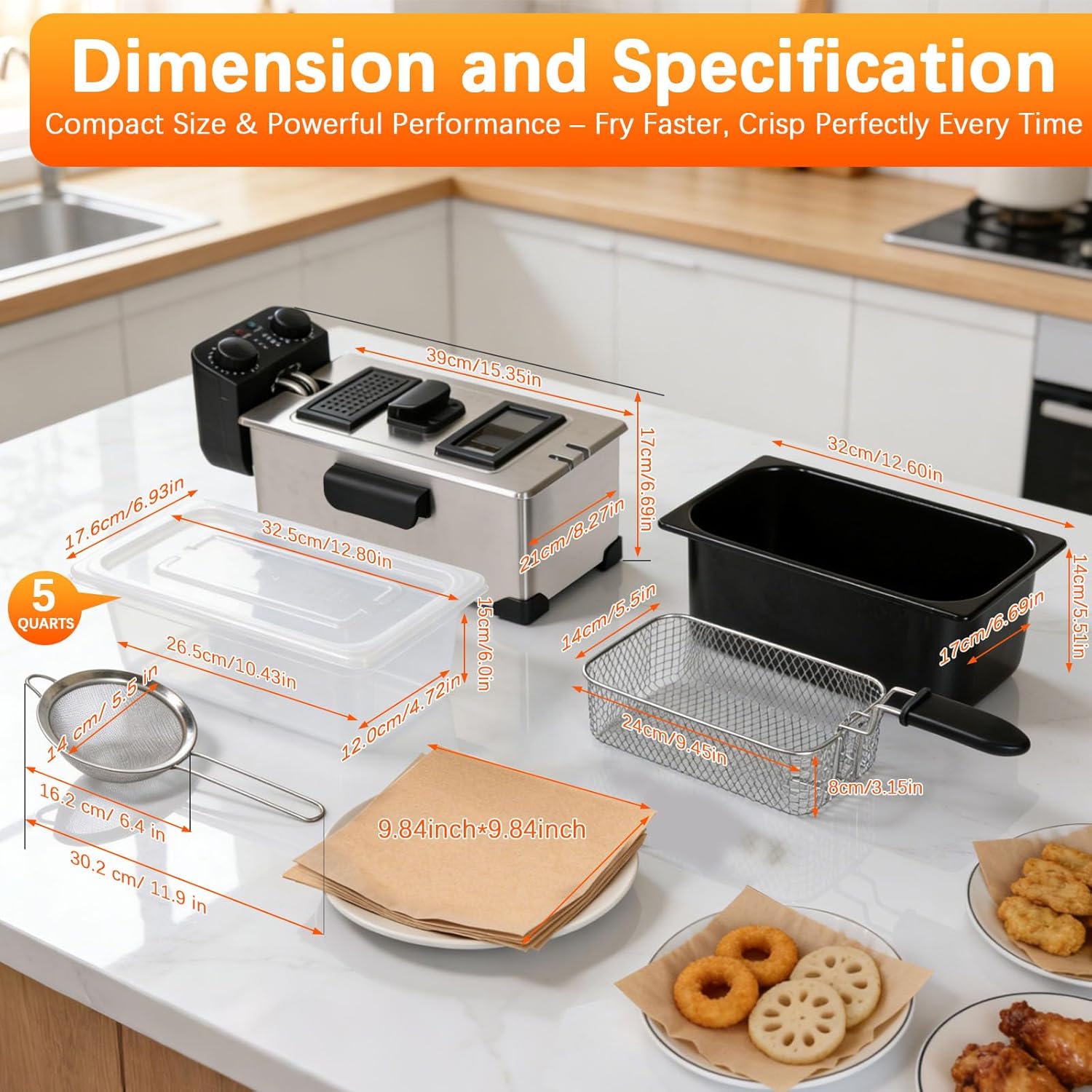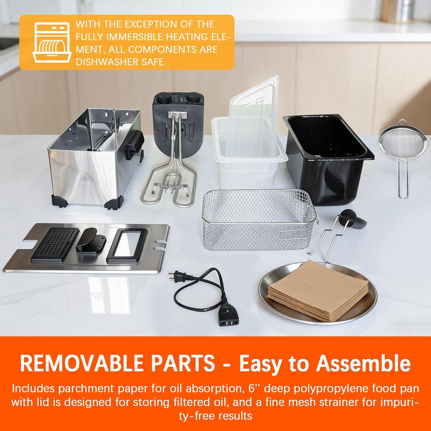 | Included Components | Detachable enamel coated oil tank, Fryer basket, Stainless Steel Housing, Viewing Window Lid, heating element |