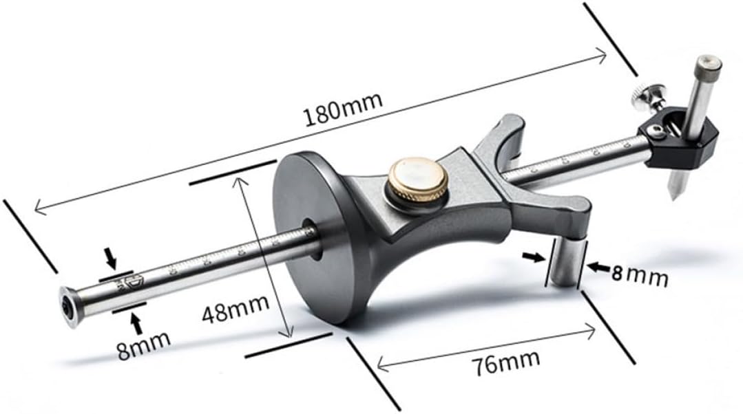 Package Include 1 x marker scribe Features -Product Info:Woodworking marker -Size: About 18.00X4.80X4.80cm/7.07X1.89X1.89inch. -Color: Light Grey. -Material: Aluminum Alloy. -Has a wide range of uses, suitable for wood, ceramics, iron, etc., will be your good choice Dovetail Marker. -Reasonable design, comfortable grip, easy operation and Copper Mortise Gauge. -The wiper is made of aluminum alloy material, strong and durable, and it is good. -It has a wide range of uses, straight and arc dual-use, which can you Woodworking Scriber Tool. -The scale is clearly visible, easy to use and high precision measurement Wheel Marking Gauge.Goods InformationDovetail Marker Made with craftsmanship and reasonable design, it has excellent durability and practicality, can easily meet your work needs, and to your line drawing.Marking Device Need a ruler that can meet all your woodworking tasks? Our products will be your good choice.Wheel Marking Gauge This is a very good linear scriber for woodworking, which will serve you well