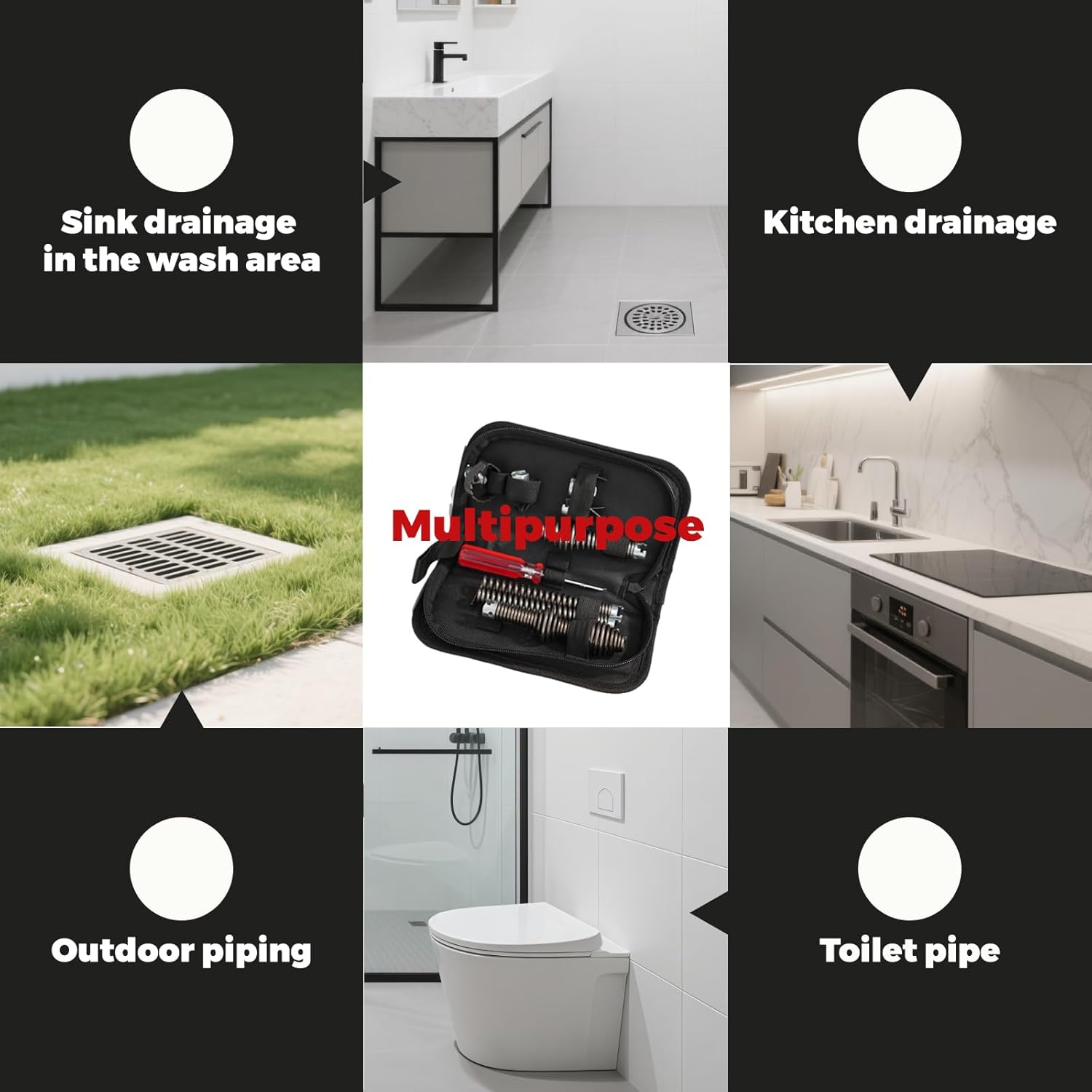 • Comprehensive Cleaning Solution: This kit includes 4 cutting tools (Grease “C” Cutter, Spiral Sawtooth Cutter, 4-Blade Sawtooth Cutter, and Shovel Cutter) and 4 augers (Straight Auger, Retrieval Tool, Funnel Auger, etc.), capable of handling grease blockages and root removal with ease. Additionally, it includes a disassembly key for quick and easy tool removal and replacement.