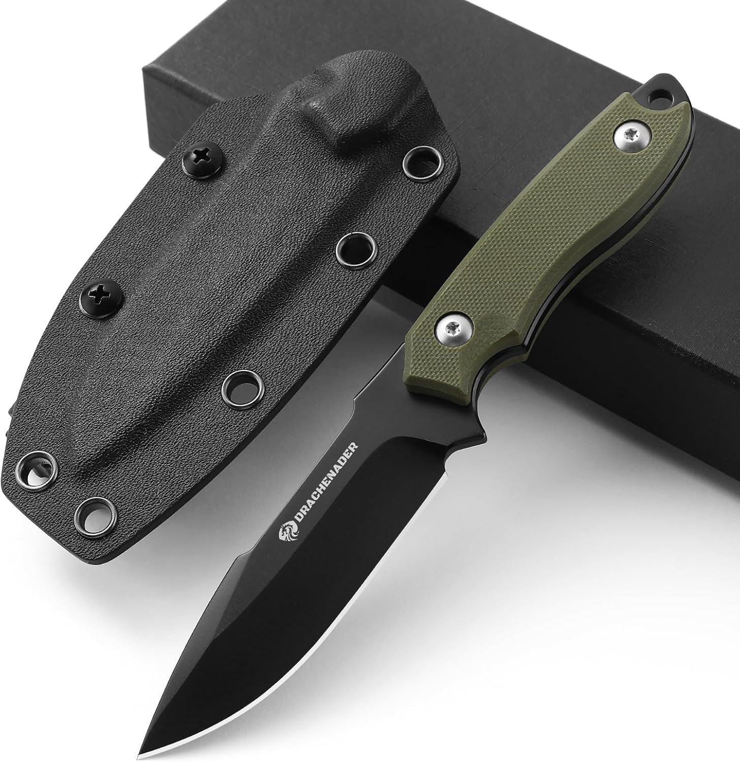 Enhance your knife collection with the DRACHENADER EDC Knife Bundle, featuring two versatile fixed blade knives. This set includes one black/green knife and one white/green knife, both crafted from durable D2 steel for long-lasting sharpness. Each knife is designed with a G10 handle for a secure grip and comes with a Kydex sheath for customizable horizontal or vertical carry. The white/green knife also includes a built-in clip for added convenience. Ideal for a variety of tasks, this set offers style and functionality in one package.