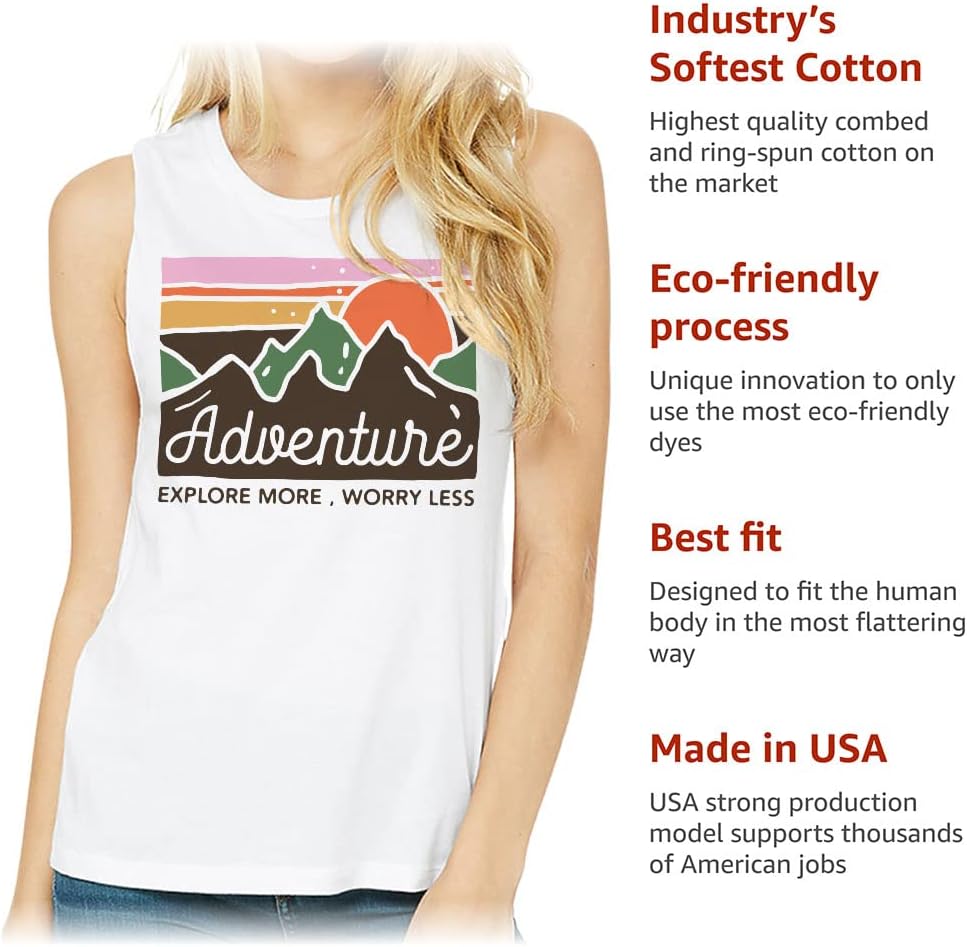 Does your wardrobe call for simplified silhouettes and supreme softness every day? In this case, Explore More Worry Less Women's Muscle Tank is just what you need. We're constantly updating our clothing fabric and style to meet our people's needs and to be consistent with our goal of bringing people a healthy and beautiful life. We guarantee you that you will not regret buying Adventure Tank Top. Please yourself with a quality product, because you deserve it.