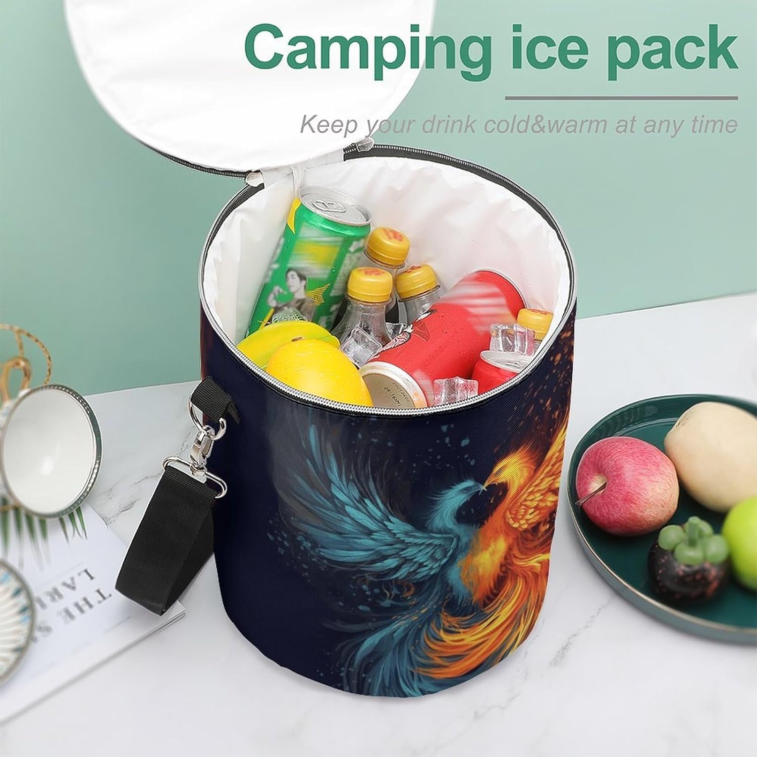 Keep Your Adventures Fresh and Mess-Free!Our Fire And Water Phoenix Picnic Basket is designed to elevate your outdoor experiences. Whether you're planning a family picnic, a day at the beach, or a long camping trip, this bag ensures your food stays cold, your drinks chilled, and your belongings organized without any leaks.KEEPS THINGS COLD & INSULATEDConstructed with high-quality polyester and advanced insulation technology, this bag provides excellent thermal retention to protect your perishables.UNMATCHED PERFORMANCEThe leakproof design means you never have to worry about dealing with watery messes from melting ice packs again. The large, wide-opening top makes loading and unloading a breeze, and the heavy-duty zipper secures everything inside.COMFORT AND PORTABILITYWe've equipped this Fire And Water Phoenix cooler bag with an adjustable shoulder strap to distribute weight evenly and reduce strain, even when the bag is fully loaded. The additional padded top handle offers a comfortable alternative for carrying.READY FOR ANYTHINGYour ultimate partner for adventure, this versatile tote is suited for a wide range of activities: camping, hiking, beach trips, barbecues, road trips, and daily grocery shopping. It's also a smart addition to your car emergency kit or disaster preparedness supplies.EASY TO STORE AND MAINTAINWhen not in use, its collapsible design allows for compact storage, saving precious space in your car or closet. To keep your cooler bag in great condition, we recommend hand washing or machine washing with mild detergent. Do not bleach or soak for extended periods. Allow to air dry thoroughly before storing.Size:10 x 11.8 inches / 25.5 x 30cmI wish you a pleasant shopping experience!
