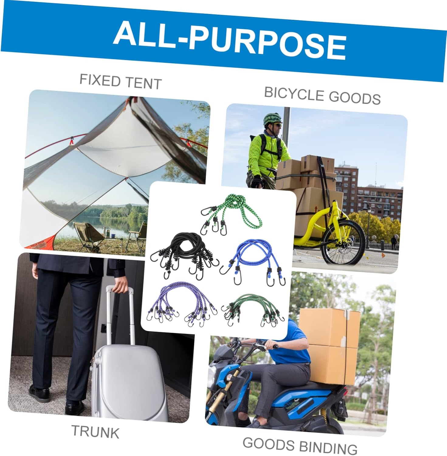 Package List 6 x 30cm ropes 6 x 40cm ropes 4 x 60cm ropes 2 x 80cm ropes 2 x 100cm ropes Features -Length: 30cm/ 40cm/ 60cm/ 80cm/ 100cm small bungee cord. -Color:Assorted Color bungee ropes -Size: 100.00X2.80X2.00cm/39.30X1.10X0.79 in. heavy duty bungee cord -Material: Rubber heavy duty bungee cords assorted - Can be bent at will, not easy to tear or break, catch the position with hooks design. bungee cord assorted size - The length will be long enough, can be used long time, excellent wear resistance, corrosion resistance and rain resistance outdoor bungee cords. - Can not only be used for binding, but also can be great decorations for living room, stairwell, fence and more bungee cord with metal hook. - Using and fine workmanship, and , and sturdy. camping elastic straps - It is convenient for you to store, light weight and compact, will not take up too much space. bungie cordsGoods DescriptionLuggage Straps Just use the product anywhere you want to decorate as needed, and delicate, thick and not easy to break.bungee cords assorted sizes Why not have a look at our bungee straps? It is a tool that can to your daily , long enough and help you bind items