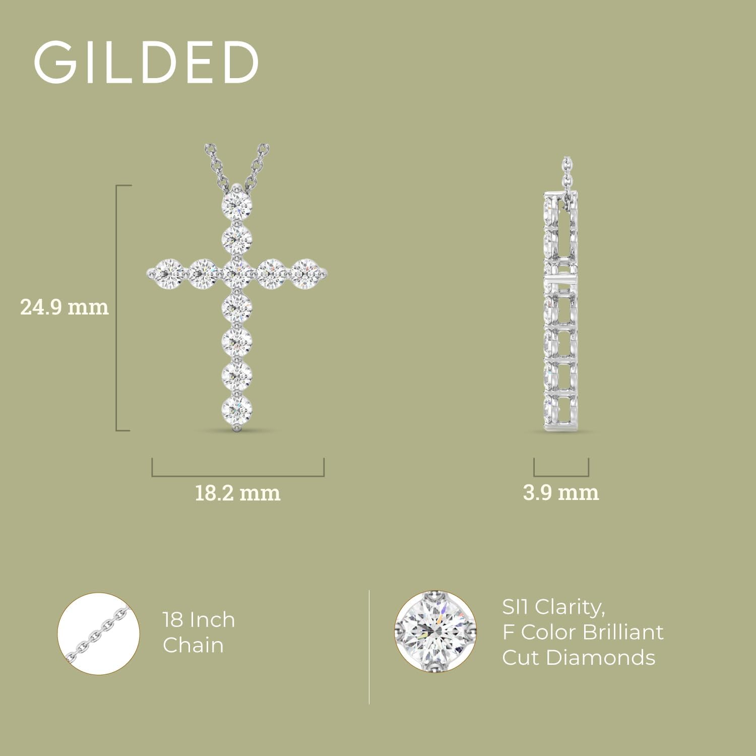 Experience the elegance of the Gilded 10 Karat White Gold Cross Pendant Necklace, a beautiful fusion of sophistication and meaning. Measuring 0.83 inches in length and 0.48 inches in width, this delicate cross showcases three natural round-cut diamonds, symbolizing love, hope, and devotion. The 18-inch white gold chain, complete with a secure spring ring clasp, offers a comfortable fit for any occasion, making it a versatile addition to your precious accessories collection. At Gilded, we prioritize everyday luxury that’s both accessible and sustainable. Our commitment to quality design ensures that each piece not only enhances your style but also reflects our dedication to responsible practices. Thoughtfully packaged in a chic and refined box, this gold necklace for women makes an ideal gift for birthdays, weddings, or special milestones. Embrace a stunning adornment that serves as both a cherished keepsake and a statement of personal expression. Elevate your jewelry assortment with the Gilded promise of quality and classic beauty.