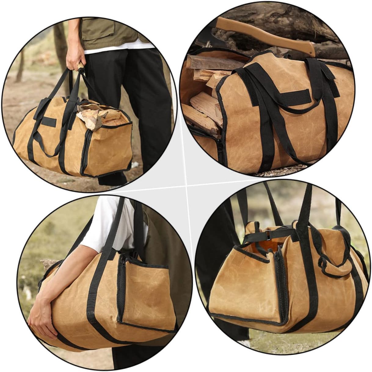 Package Include 1 x Firewood Bag Characteristics -Color: Khaki firewood carrier outdoor. -Size: 48.00X37.00X31.00cm/18.86X14.54X12.18in fire wood carrier tote -Material: Canvas storage tote for firewood. - Great for collecting logs, camping, and bringing to bonfires firewood hand storage bag. - As storage tote bag, it can hold logs, festival items, garden tools, picnic or camping portable firewood transport bag. - Made of material, and useful log tote bag. - Logs can be transported from the log stack to the and from one shed to another without fatigue firewood packing bags. - Can be fold up, easy to storage when not in use wood packing bag.Goods Information log carrier With our handbag, you can complete the half the time and half the effort.log carrying bag This product is a wood storage bag, made of materials, transporting large pieces of oak and maple pile to the