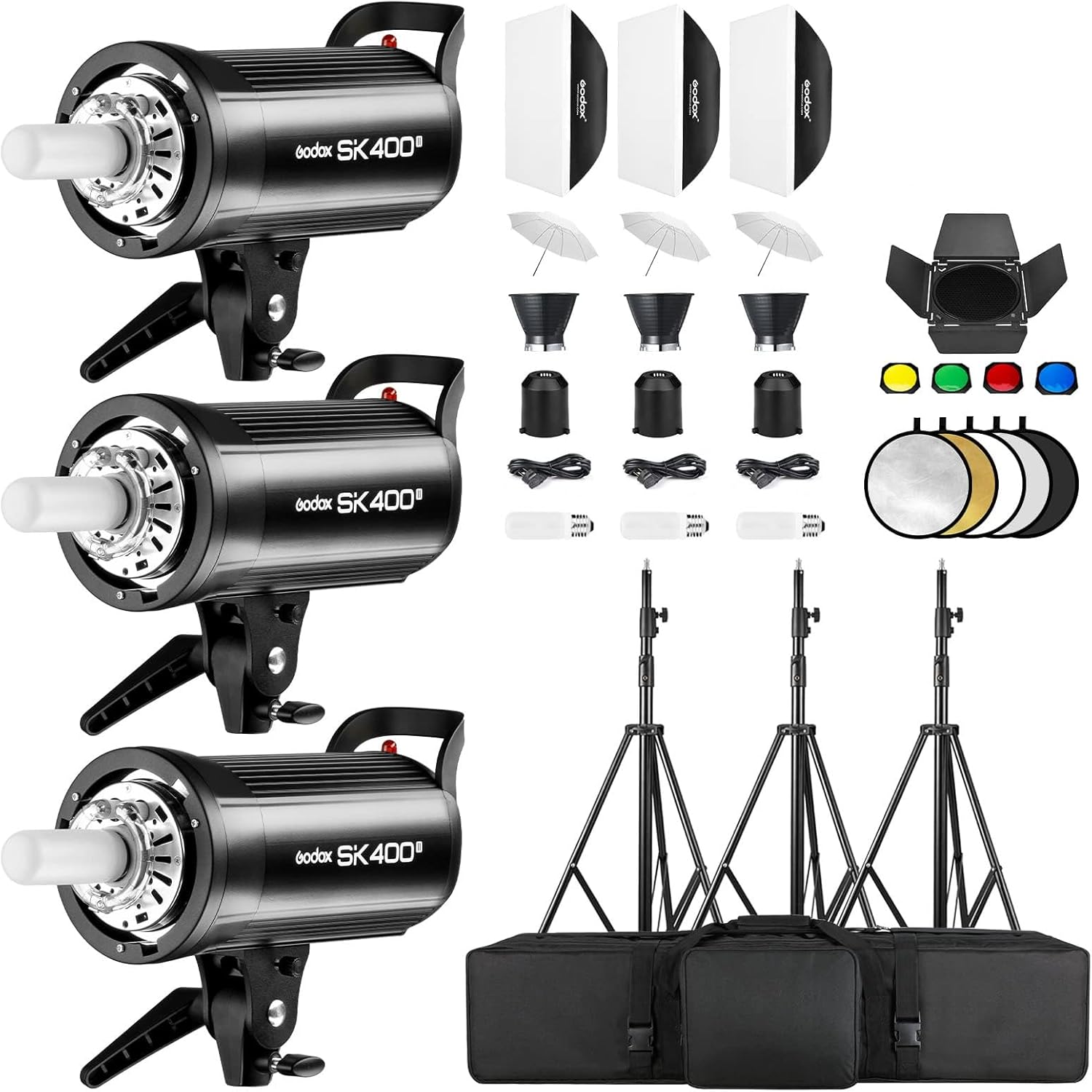 | BuiltIn Media | SK400II Flash,10inch Light Stand,Softbox,Umbrella,Standard Reflector,Barn Door,Carrying Bag;Reflector |