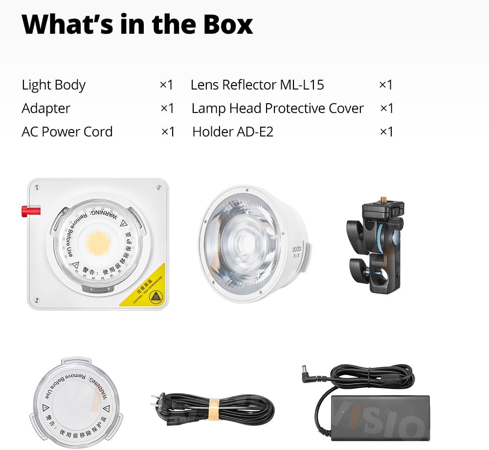 | BuiltIn Media | Adapter × 1, AC Power Cord × 1, Instruction Manual × 1, Holder AD-E2 × 1, Lamp Head Protective Cover × 1, Lens Reflector ML-L15 × 1, ML100Bi Light Body × 1 |