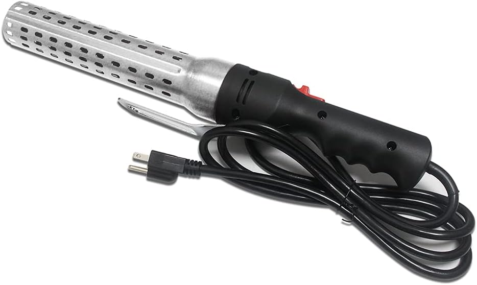 The new Electro-Torch is the perfect grilling, camping, and RVing accessory. The Electro-Torch allows you to easily light your charcoal barbecue, wood burning fireplace, campfire or fire pit without using matches or starter fluids. Description: Electric Charcoal Starter Material: Bakelite handle+Alum Alloy tube The safety casing cools to the touch a few seconds after use. A hook for hanging that doubles as a bottle opener. Voltage/Frequency: 110V~60Hz Rate Power: 1500W Tube line: 10 inches Tube thickness: 0.04 inch Max temperature: 1100°F Power cord: 6.5 FT Package includes: 1 x 18inch Charcoal Firestarter Tips: Leave a little room for air to circulate will help you to light the fire faster. Using the Charcoal starter square which we equipped, would help you ignite the wood or charcoal easier and faster. When using the electric charcoal fire starter, please continue to press the trigger forward. If you release it, it will stop working.
