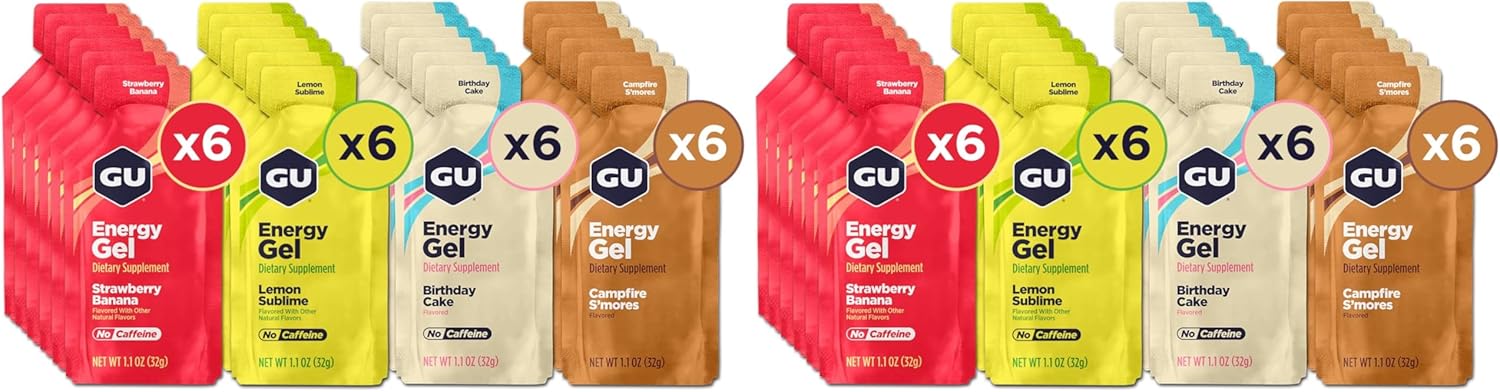 GU Original Sports Nutrition Energy Gel is the energy gel that started it all. In 1993, Dr. Bill Vaughn developed the world's first energy gel to help his daughter perform better during ultra-marathons, and GU has been helping to propel the world's most successful extreme athletes to success ever since. GU Energy Gel sustains all forms of athletic activity with a highly compact, portable, and calorie-dense packet that is loaded with carbohydrates that can be rapidly absorbed. Branched-chain amino acids limit muscle fiber damage and increase speed of recovery, and extra electrolytes help maintain water balance. Some flavors feature caffeine to increase concentration. While the original formula has been tweaked and evolved over the years, the end result is still the same: GU Energy Gels fuel the best endurance athletes in the world. GU Original Energy Gel comes in a wide variety of great tasting flavors. Each packet contains 450mg of Amino acids, 100 calories, and at least 21g total carbs.