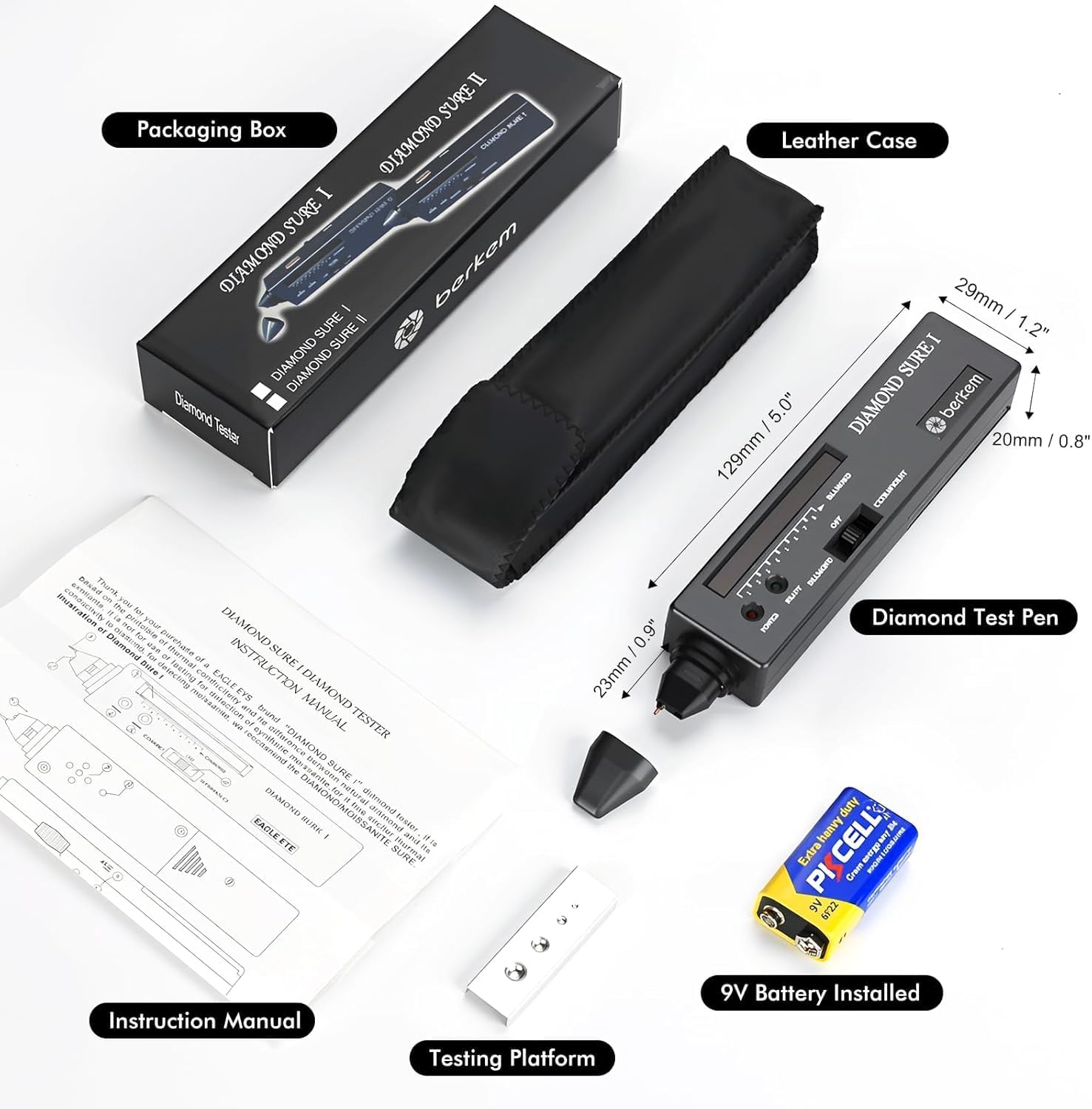 High Accuracy Professional Diamond Tester Pen with 365nm UV Light & Thermal Sensor – Fast 0.5s Detection,Diamond Tester, Professional Jewelers' Gemstone Detector,Novice and Expert Jeweler Tool How To Test Diamond: 1. Remove the pen cap 2. Press the power switch and slide it to the "diamond" position. The red light POWER will light up and the tester will start preheating 3. Preheat for 25 seconds, the green light READY will light up, the tester is ready and you can start testing 4. The conductive metal plate on the side must be touched during the test 5. Keep the test pen vertical to the diamond 6.Real diamonds will light up a red LED and make a clear sound Fake diamonds will light up a green or yellow LED and will not make a clear sound 7. Slide the switch on the tester to the "ultraviolet" position . Real diamonds usually have blue fluorescence 8. Note: The probe can only touch the diamond gemstone, not metal or skin, to avoid false results How do I ensure I get the most accurate results every time? Follow 3 steps: 1. Touch the metal plate with bare fingers. 2. Hold the probe at a 90° angle to the stone. 3. Use in standard indoor temps (50°F–95°F). These tips ensure professional-level precision and prevent inconclusive readings. Can this tester distinguish between natural and lab-grown diamonds? No. Because lab-grown diamonds (CVD/HPHT) share identical physical and thermal properties with natural diamonds, no thermal tester can distinguish them. It will identify both as "Diamond." For high-end appraisal, laboratory equipment is required. Can it test rings or colored gems like rubies? It’s optimized for diamonds and simulants like CZ and glass. For mounted rings, touch only the stone, not the metal. It’s not designed for colored gems like rubies or pearls, but the UV light can help observe unique fluorescence patterns.