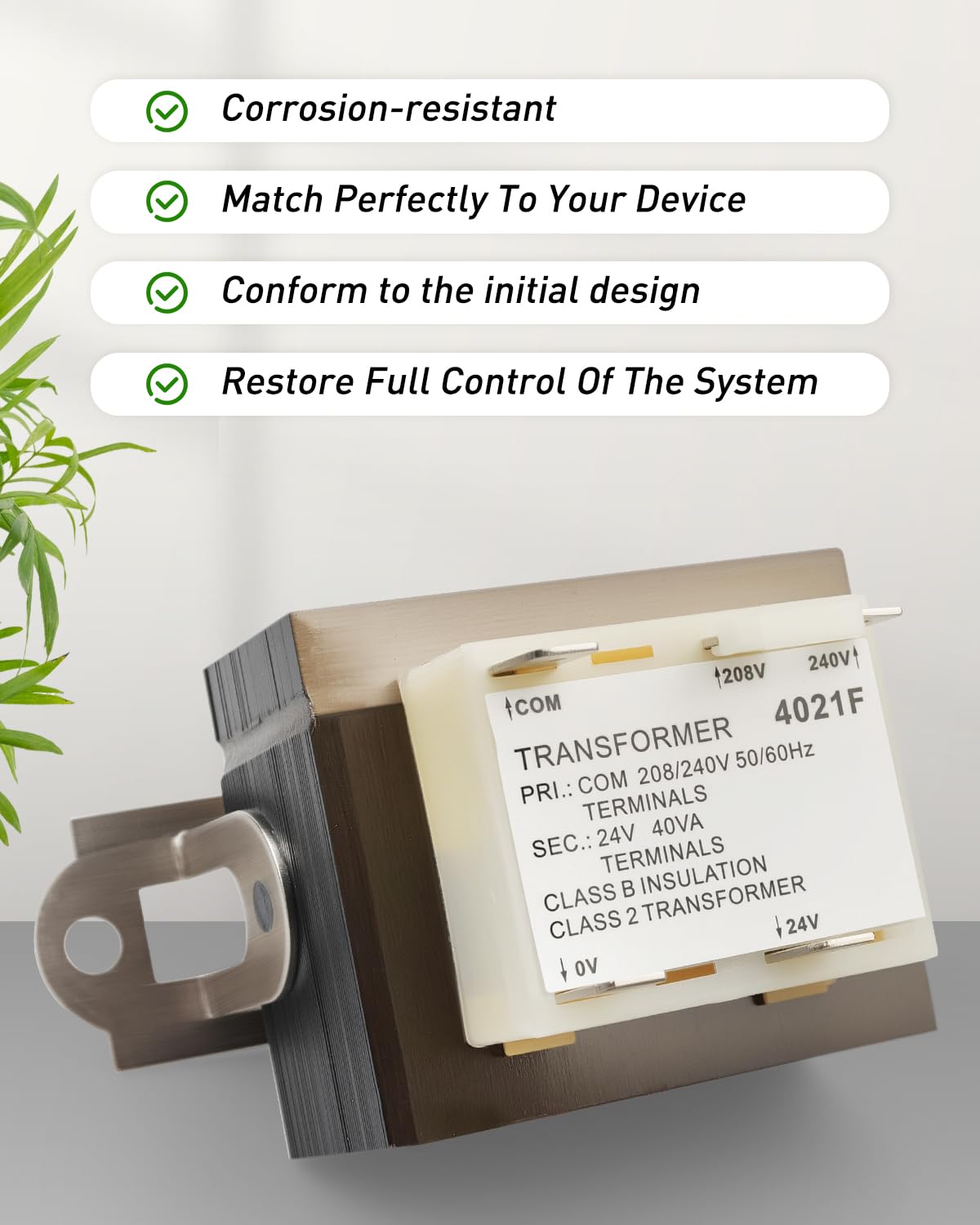 The HT01CN241 Furnace Transformer is a crucial power conversion component for HVAC systems. It converts 208/240V high-voltage electricity into a stable 24V low-voltage control power supply, providing safe and reliable operating voltage for core components such as the furnace, control board, fan, and solenoid valves. This transformer has a rated power of 40VA and is specifically designed for central air conditioning, heat pump, and gas furnace systems. It perfectly replaces original equipment manufacturer (OEM) parts such as BE28316007, 1172028, and HT01CN241, allowing for direct installation without wiring modifications. Rugged Housing and Protective Structure: The housing is made of rust-resistant low-carbon steel with a corrosion-resistant treatment, ensuring stable operation in humid, dusty, and vibrating environments. The internal steel frame structure effectively suppresses operating noise and mechanical stress. Wide Compatibility: Designed for multi-brand HVAC systems, it is compatible with the 24V control circuits of various models, such as central heating systems, heat pump controllers, and gas furnace ignition control modules. No modification is required; it's plug-and-play. Installation and Usage Recommendations: Always disconnect the power supply before installation to ensure safety. Installation can be completed using standard terminal blocks. After installation, check that the output voltage is stable to confirm that the equipment is operating normally. This product has undergone rigorous quality testing to ensure reliable performance and long service life, making it an ideal solution for HVAC electrical repair and replacement.