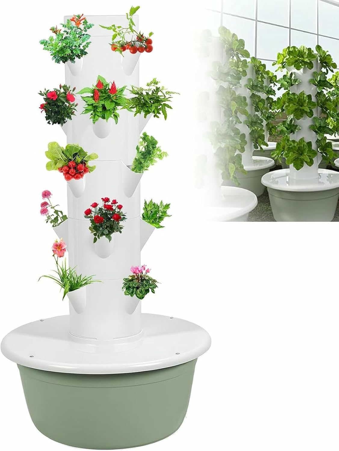 Whether growing leafy greens like lettuce, spinach, and kale, or crops like cherry tomatoes and peppers, it enables rapid growth and abundant harvests.▲Hydroponic planting process1. Place the planting sponge in the seedling tray and soak it in water for 20 minutes until fully saturated2. Place one seed in each hole (do not place more than one seed per hole, as overcrowded growing conditions can reduce yield)3. Add perlite (provided separately) to each hole4. Water 1-2 times daily to maintain humidity. 5. Once seedlings emerge, transfer them into the holes of the hydroponic tower. ▲Specifications Product Name: Garden Hydroponic Tower Material: ABS Number of Layers: 5/7/9/11/12 layers Voltage: 110V/220VPump Power: 10/16/25W Number of Planting Holes: 20/28/36/44/48 Product Dimensions/Weight: 5 Layers: 20.8 inches/53 cm × 41.3 inches/105 cm 16.53 lbs/7.5 kg7 layers: 20.8 inches/53 cm × 52.7 inches/134 cm 18.95 lbs/8.6 kg9 layers: 20.8 inches/53 cm × 64.1 inches/163 cm 21.6 lbs/9.8 kg11 layers: 20.8 inches/53 cm × 74.8 inches/190 cm 24.25 lbs/11 kg12 layers: 20.8 inches/53 cm × 80.7 inches/205 cm 25.35 lbs/11.5 kg▲Packing list1 hydroponic growing tower1 controller1 submersible pump1 seedling tray1 growing sponge1 product manual