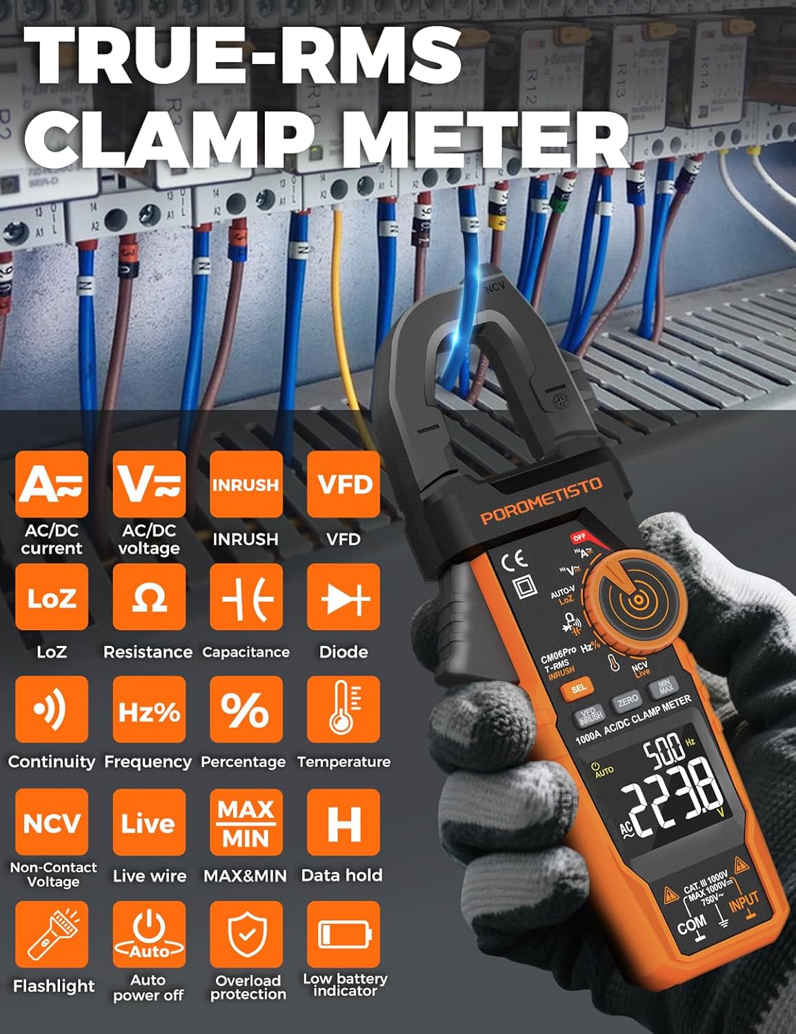 | Included Components | Clamp Meter, test leads, thermocouple, screwdriver, box, user Manual, Batteries |