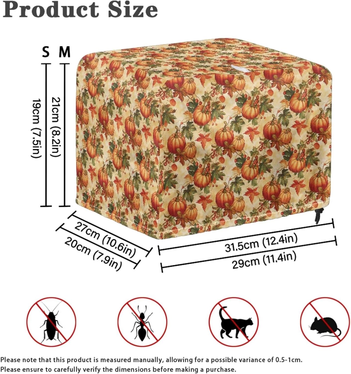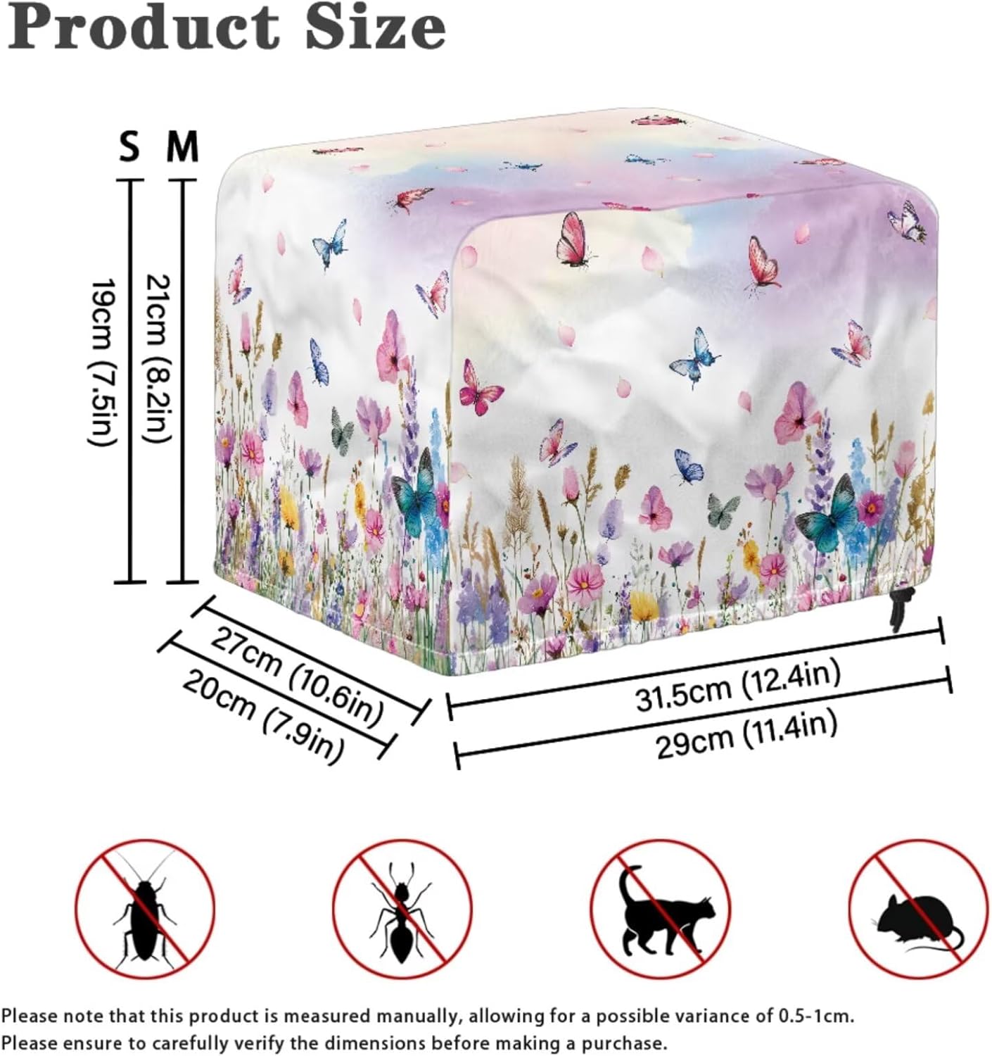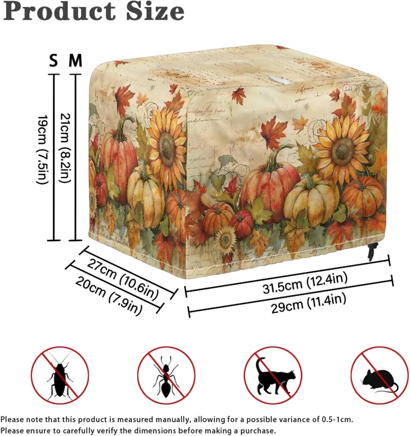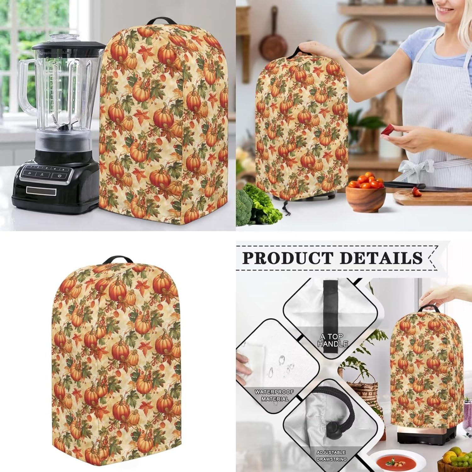 Package Include: 1 piece kitchen blender cover+ 1 piece toaster dust cover Please refer to the size before purchasing Product Name: Blender Cover Material: polyester Size: 9.4'' L x 7.2'' W x 15.9'' H Product Name: Toaster Dust Cover Material: polyester Size: Small- 11.4" L x 7.9" W x 7.5" H; Large- 12.4" L x 10.6" W x 8.2" H Features: -High-quality polyester material can be used for a long time -Dust prevention, liquid splash prevention, and abrasion prevention -Tidy up your kitchen small appliances and keep the stove and table clean -Easy to take, hang, store and clean -Exquisite patterns, elegant and lovely home kitchen decoration -A thoughtful home gift for mother, wife and friends