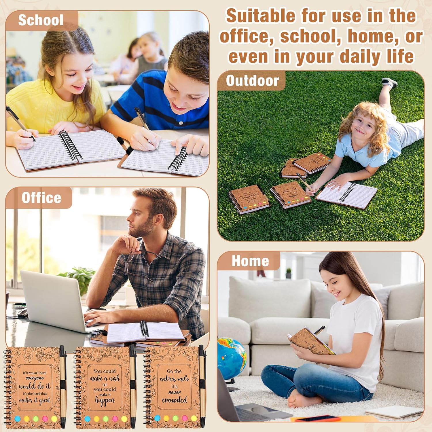 Features: Add a refreshing, earthy look to your office or study room with these inspirational notebooks bulk set. Sporting an appealing brown color, this set decked up in kraft paper creates a serene, warming ambiance, enhancing your note taking mood. These motivational notebooks can be applied at home, office, festivals, travel, and more. In addition, they are also ideal gifts for family and friends on anniversaries, birthdays or graduations to express your sincere love and care to them. Specifications: Material: kraft paperColor: brownSize: about 5.31 x 3.74 inchesPackage includes: 30 x Inspirational notepads and pen set Notes: Manual measurement, please allow slight errors on size. The color may exist a slight difference due to different screen displays.
