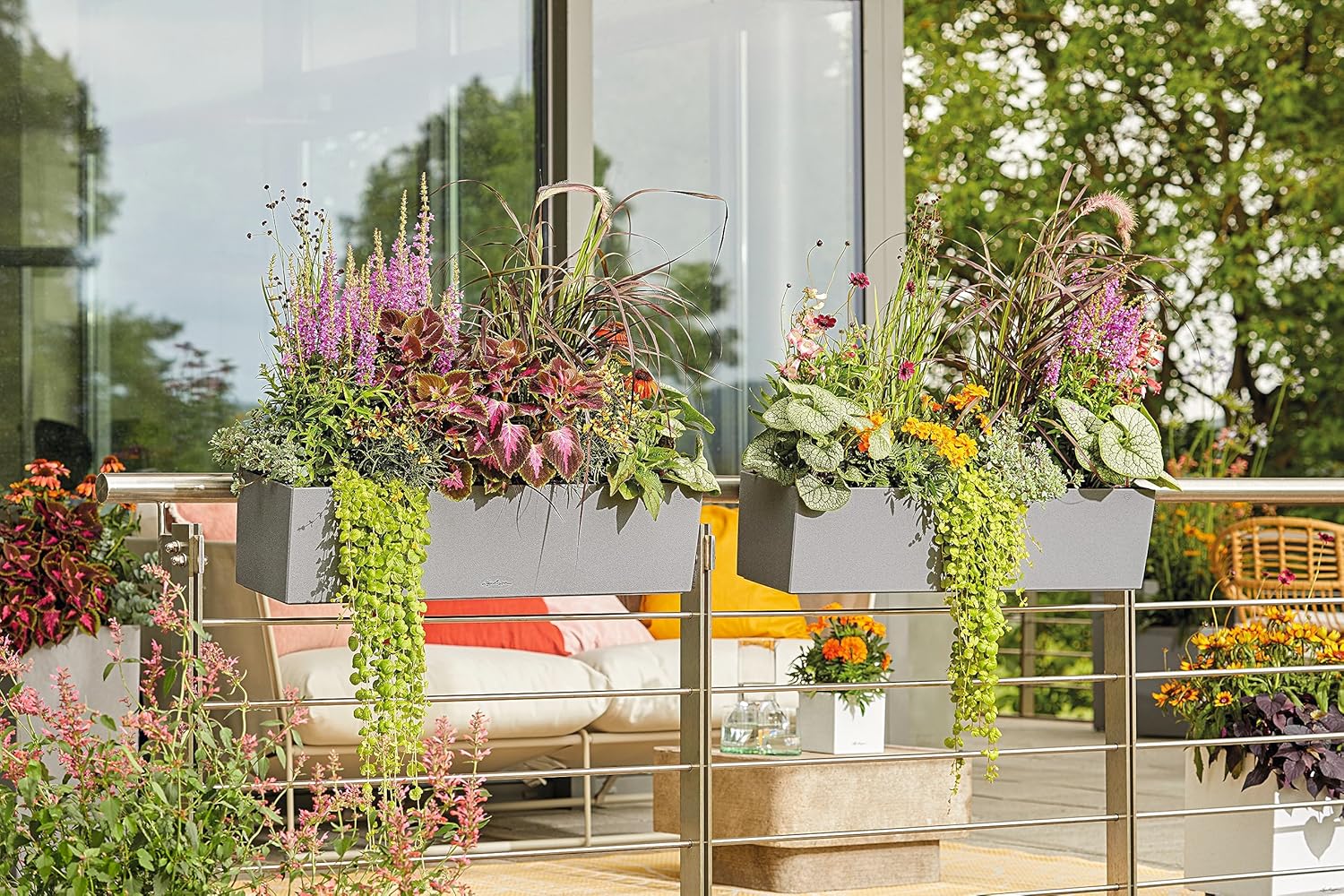 Discover the perfect way to bring your patio & balcony to life with the balconera cottage window box planter. This versatile planter can be placed on decks & used as a floor planter or hung from walls & railings as a window box planter with the purchase of the optional balconera brackets. These easy-to-use brackets fit into the back of the planter, making them an invisible support system. Plus, the balconera cottage's natural wicker finish seamlessly blends with your home’s current furnishings. Like most Lechuza planters, The balconera cottage comes equipped with an easy-to-lift liner that makes planting simple. Don't worry about juggling the planter & brackets As you hang the heavy pre-planted window box. Simply hang the empty planter from a window or balcony railing, remove the liner to plant your beautiful flowers or herbs, & then reinsert the Planted liner with Retractable handles into the already-hung balconera cottage. Furthermore, lechuza’s signature water reservoir supplies water to your plants as needed, extending the time between watering. Users can easily monitor their water reservoir levels with the planter's water-level indicator, which shows when the reservoir needs to be refilled, taking the guesswork out of plant care. Also included with this planter is lechuza’s specially-formulated plant substrate, Lechuza which separates your potting soil from the water reservoir, aerates the roots, provides your plants with nutrition, & helps regulate the water supplied to your plants. As an indoor & outdoor planter, The balconera cottage is outfitted with a drainage plug to allow for the removal of excess rainwater when installed outdoors. This feature makes the balconera cottage ideal for annuals, blooming plants & foliage.