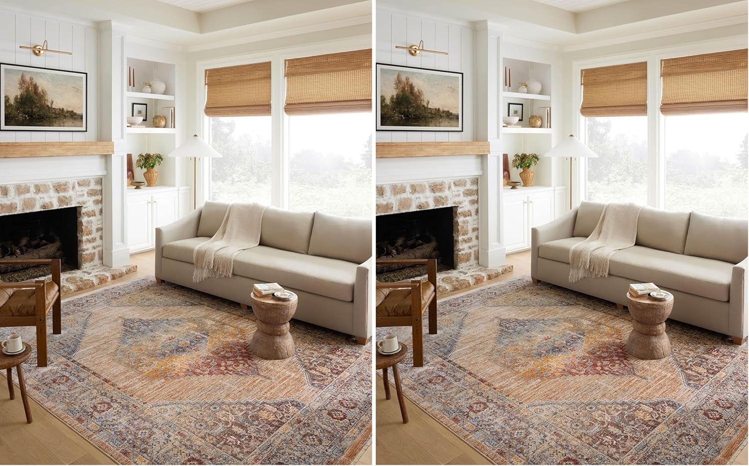 The vintage inspired area rugs in the Sorrento Collection feature an intricate pattern that creates a focal point in any room decor. Careful fading adds a warm, vintage quality that feels lived in without any actual wear and tear. Power-loomed in Turkey of 100% polyester pile, the Sorrento Collection of unique area rugs is also Okeo-Tex certified, ensuring the rug's materials don't contain harmful substances.
